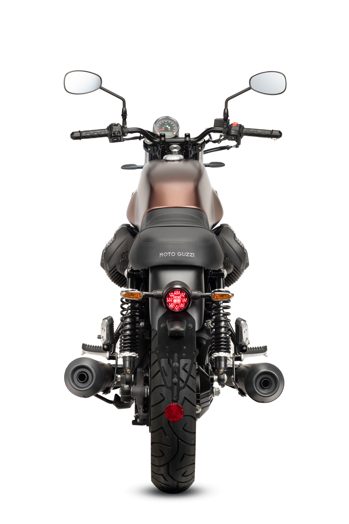 The dedicated saddle is characterised by heat welding and enhanced by the embroidered Moto Guzzi logo. V7 III Stone Night Pack will be available in the classic Nero Ruvido livery and in the Bronzo Levigato and Blu Pungente variations.