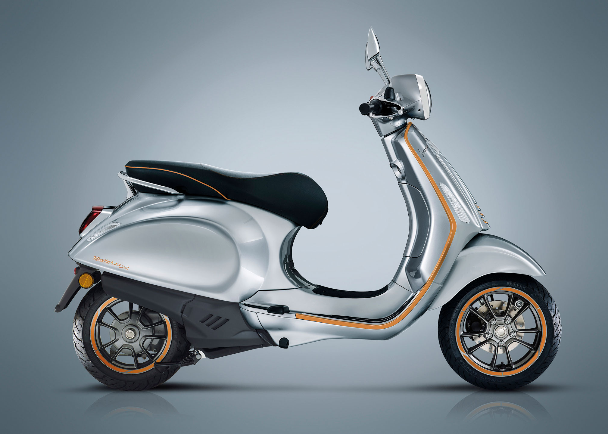 Vespa Elettrica X, on the other hand, stands out for its Rame colour standard finishes.