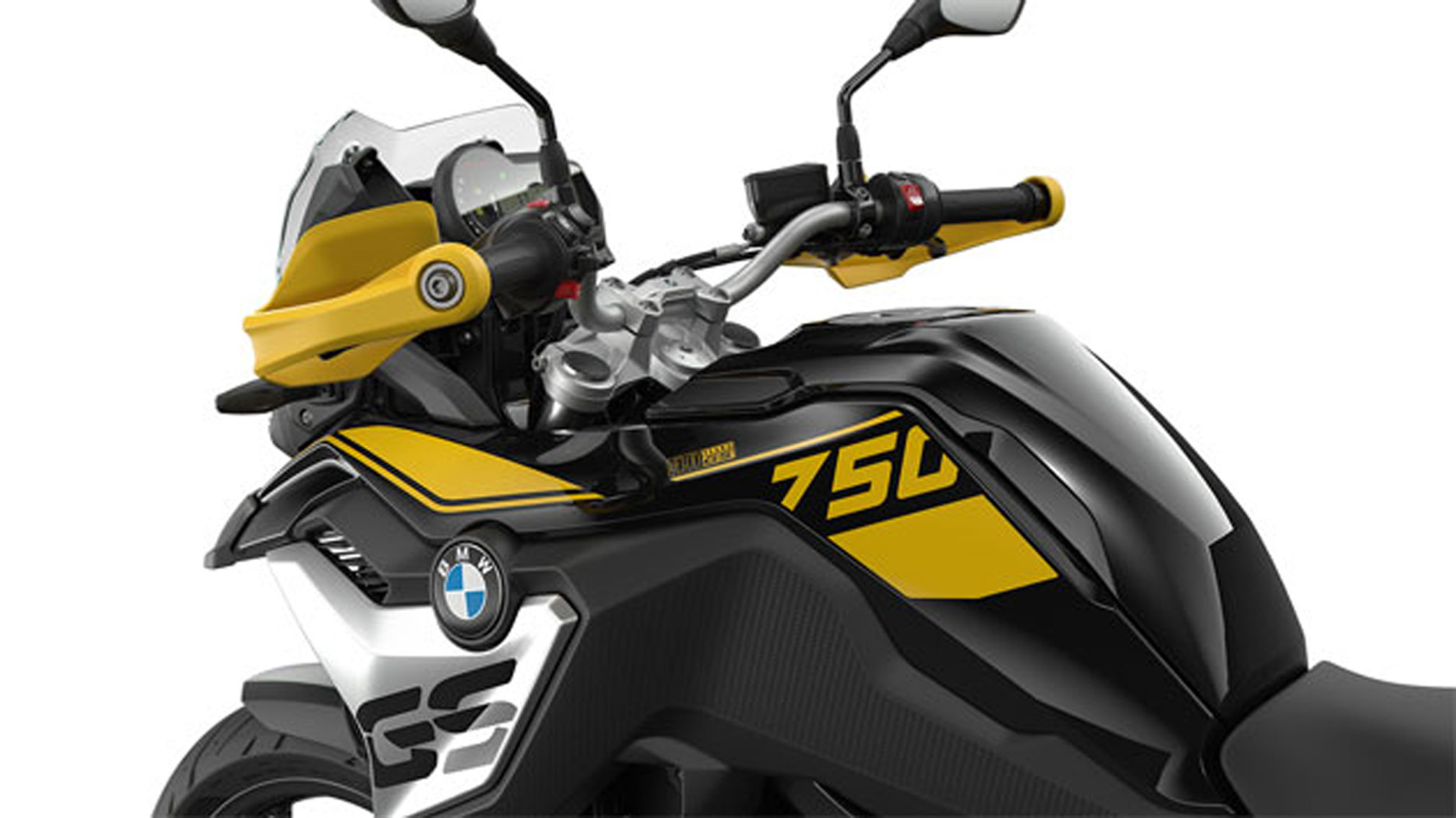 We see the cockpit and the handlebar of the F 750 GS.