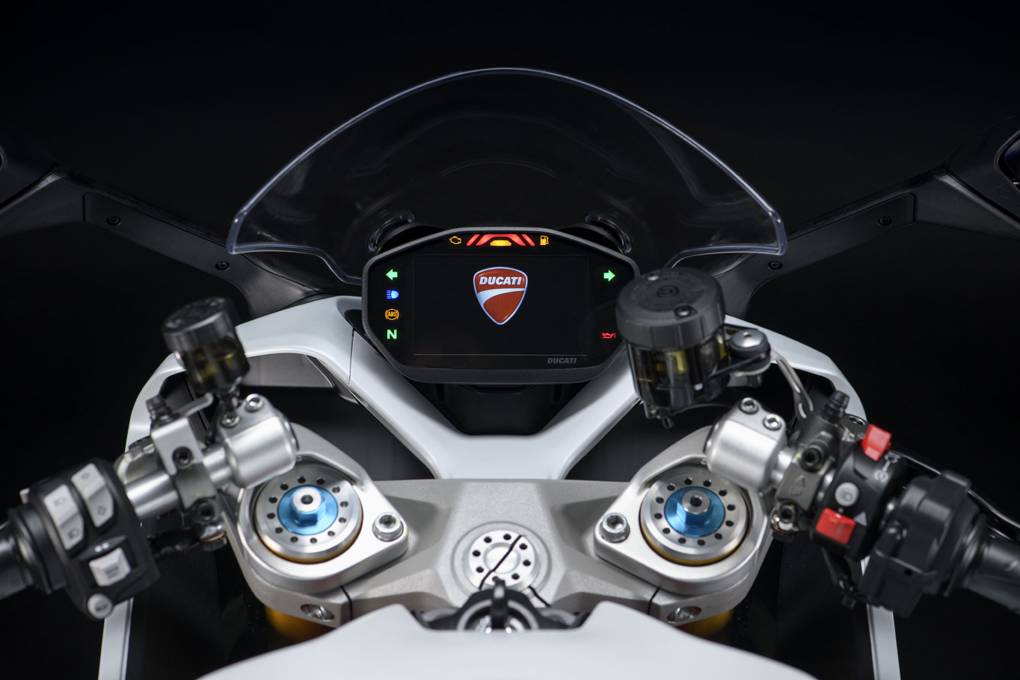 Power Modes, Day Time Running Light (DRL), Full-TFT color display, Adjustable windscreen, Öhlins suspension, Ducati Quick Shift (DQS) up/down EVO, Passenger seat cowl.