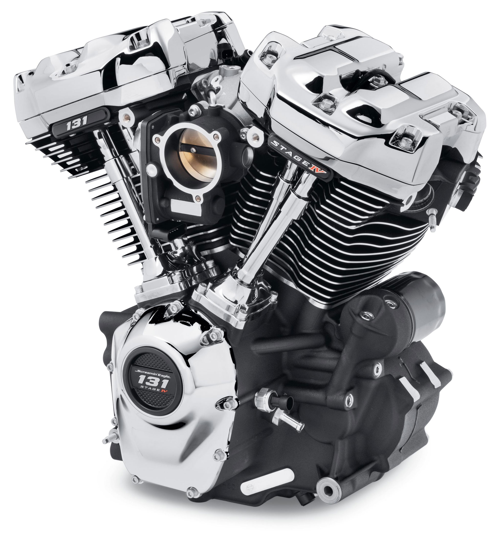Each Screamin’ Eagle 131 engine is detailed with 131 Stage IV badging on the cylinder heads and timer cover. The engine is available in a choice of two finish treatments to match original motorcycle styling or a custom direction – Black and Chrome or Black and Gloss Black.