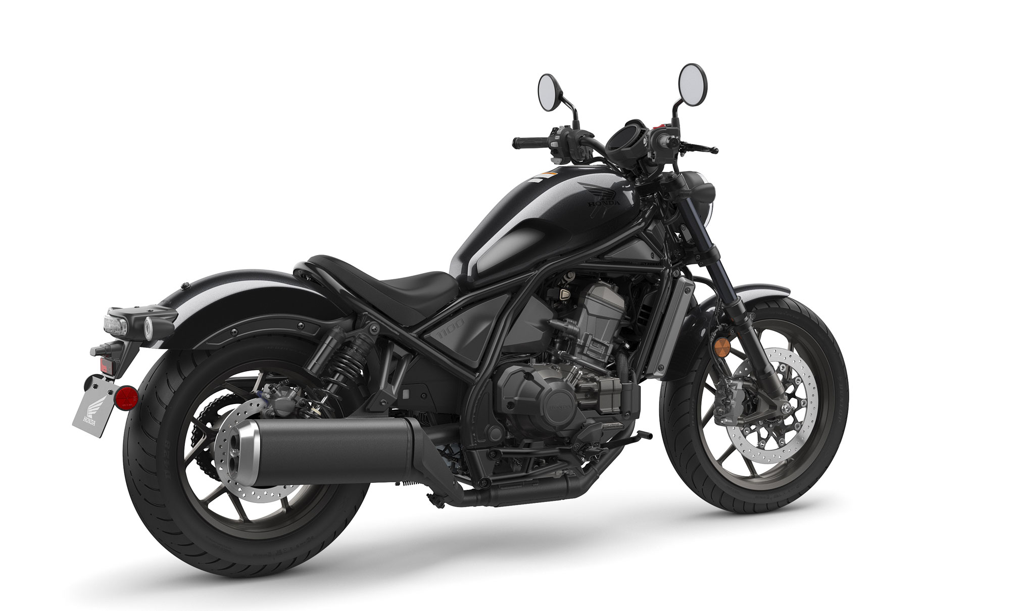 LED lighting is where it’s at now. LEDs can be lighter, brighter, and require fewer lifetime replacements than incandescent bulbs. That’s why the Rebel 1100 features an all-LED lighting package—headlight, taillight, turn signals, even the license-plate light.