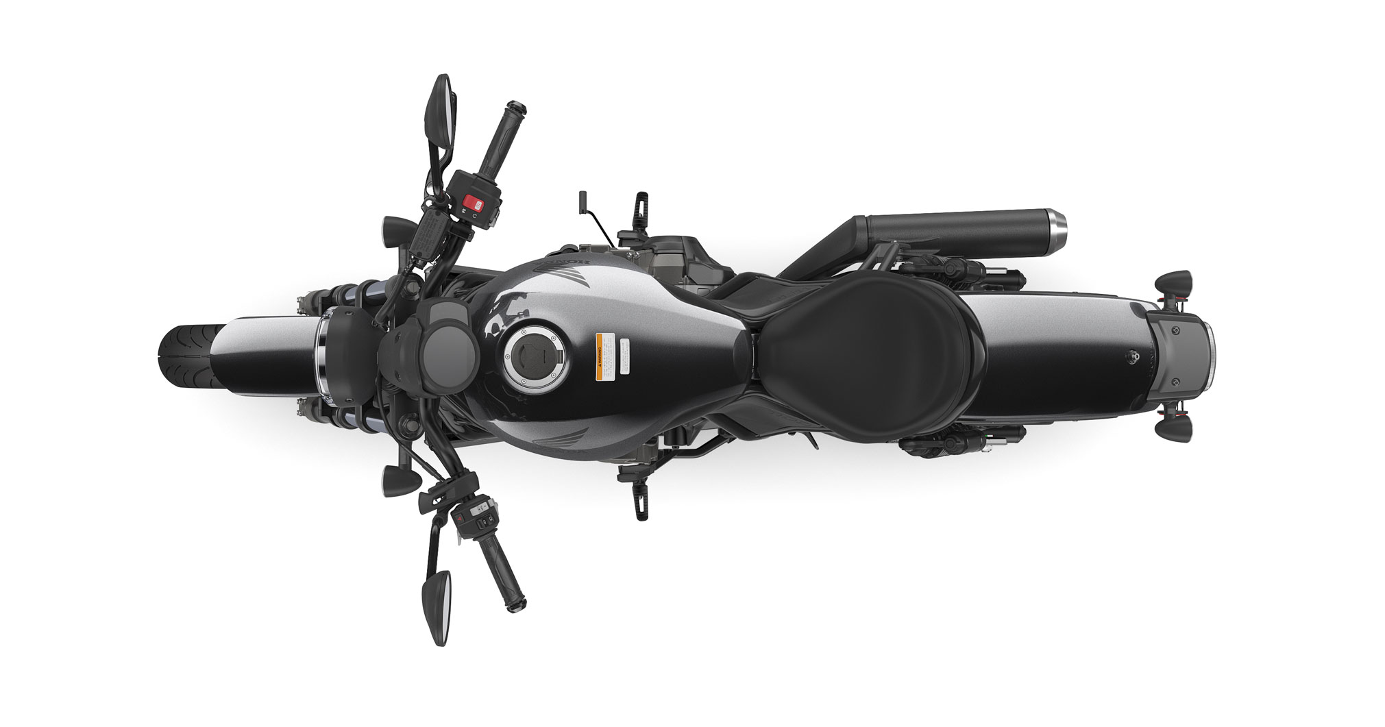 One of the key items in motorcycle design is the fuel tank. Holding a generous 3.6 gallons, the Rebel 1100’s iconic fuel-tank shape is timeless, but functionally it also teams up with the bike’s great fuel efficiency to give you plenty of range.