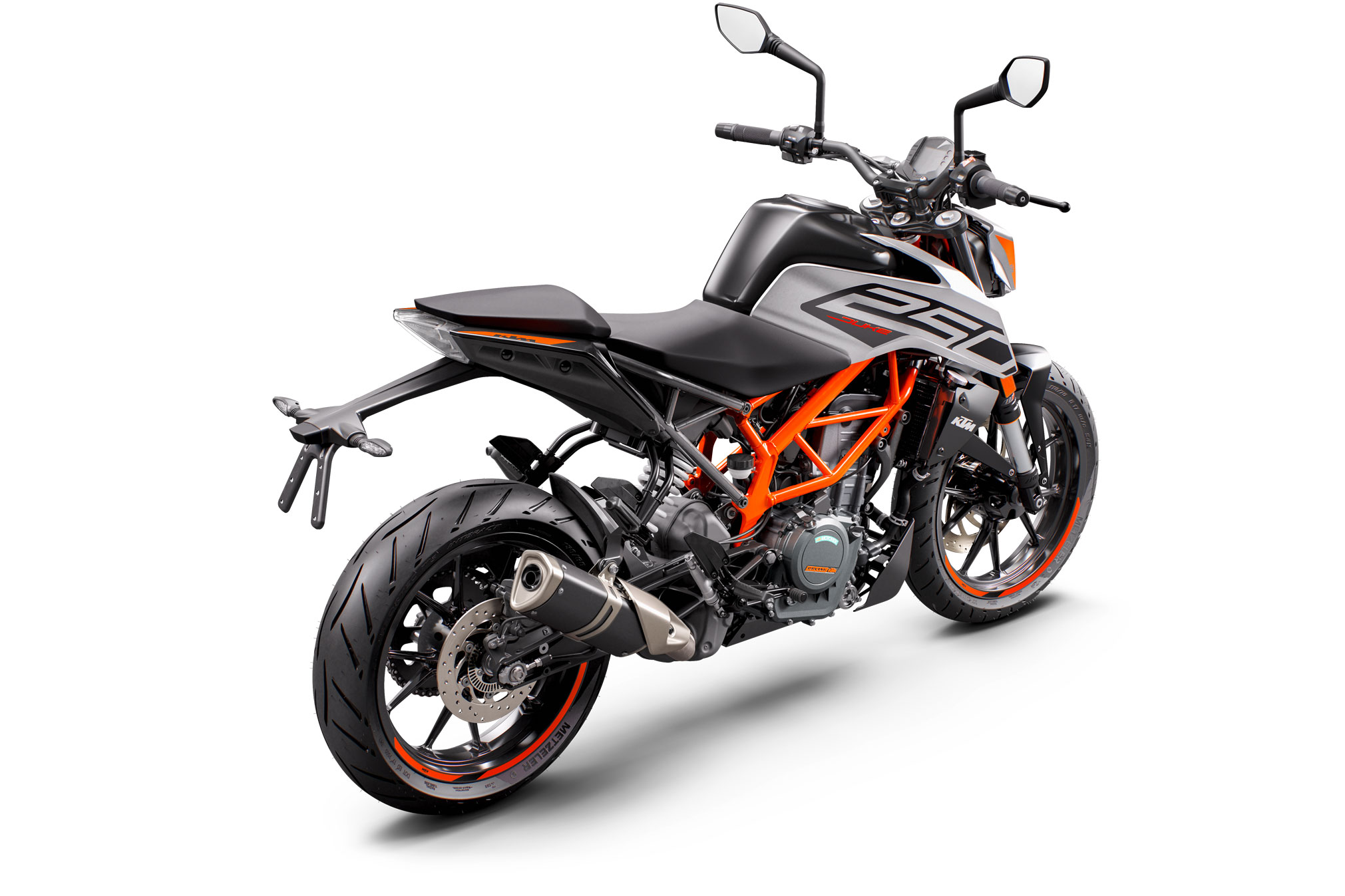 Have a napkin to hand because the 2021 gray and white color options are mouth-watering. We defy onlookers to spot the difference between the KTM 390 DUKE and the other bigger members of the range. The blend of shades from the tank, frame and subframe as well as front mask and LED headlight and finely integrated pillion seat will stir the soul. Riders will love the playfulness of the KTM 390 DUKE but will also get a kick out of their appearance on the highway.