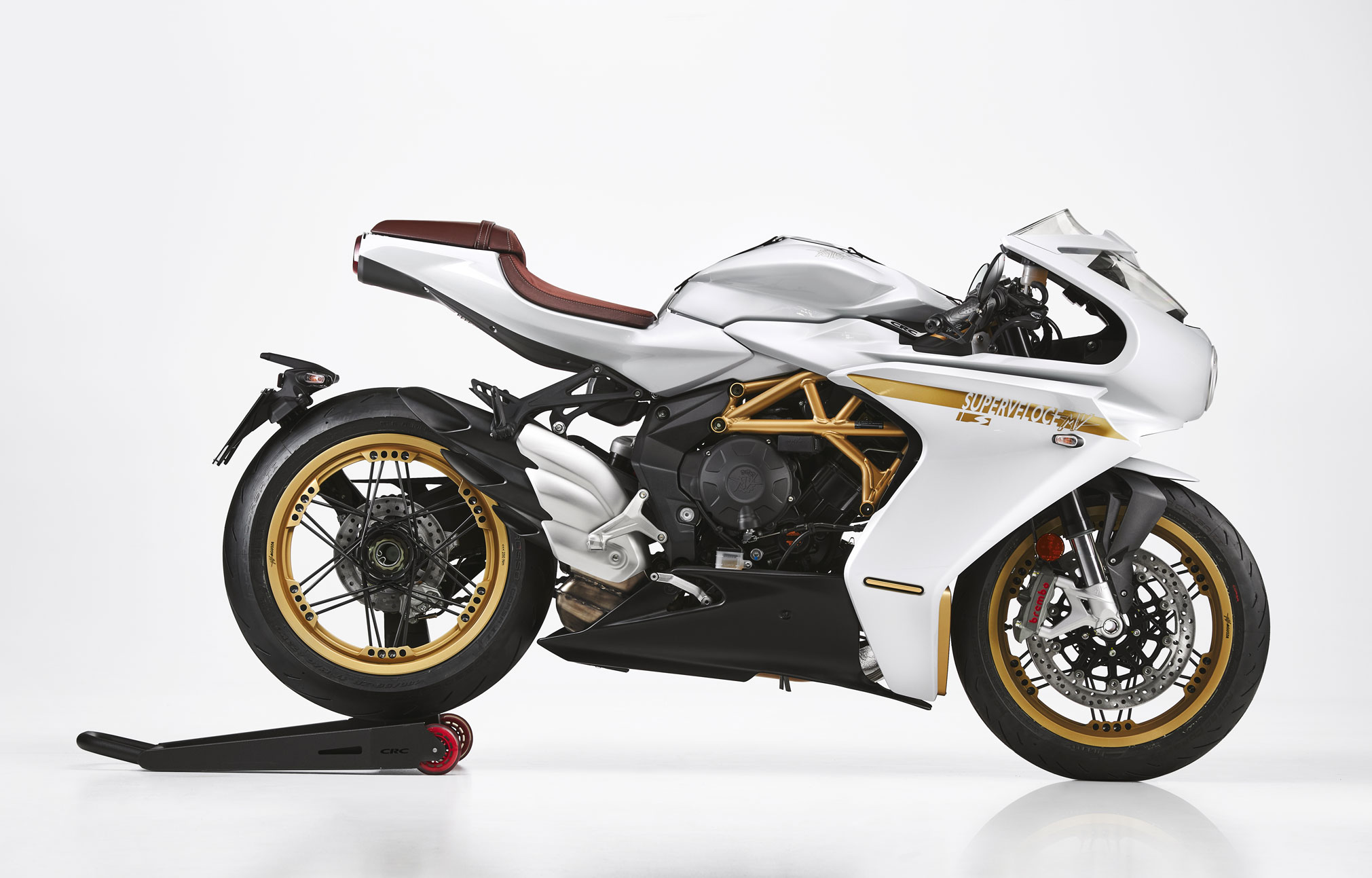 The new Superveloce S takes attention to detail to extremes. The new white livery does justice to its timeless lines, designed to cut through the wind. The spoked wheels are a tribute to the bikes of the past, but with all the efficiency and weight of a modern wheel.