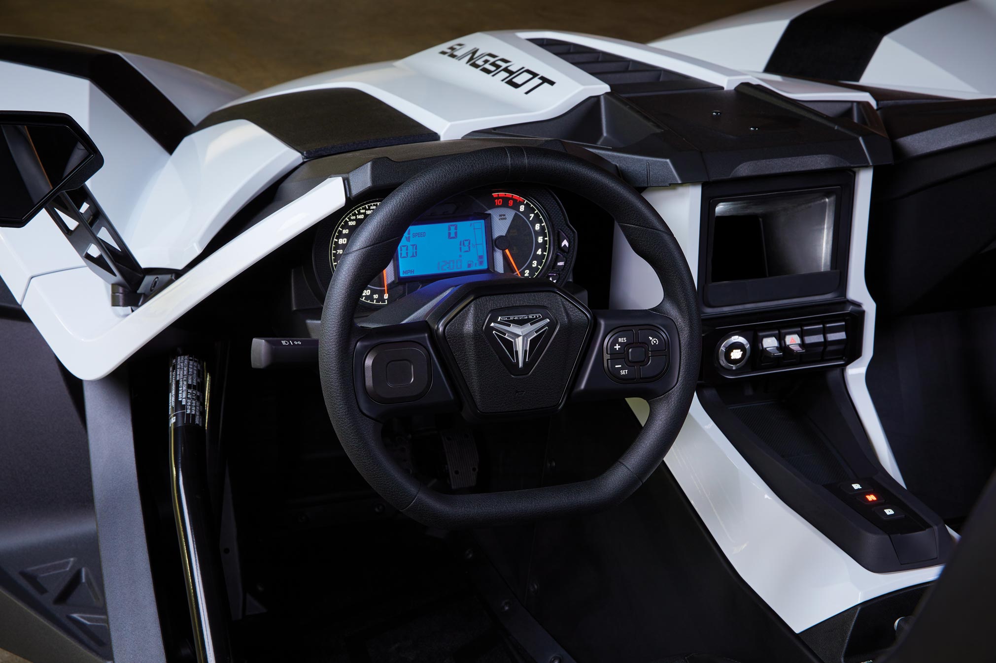Slingshot’s S model, available with two package options, has been designed for drivers seeking the essentials, but with an eye towards customization. The standard S, starting at $19,999, is available in manual or AutoDrive and offers the perfect canvas for drivers looking to create a ride that truly represents their personality and style. Drivers looking to beef up their S can add Technology Package 1, which includes the new 100-watt Rockford Fosgate® audio system with a 2.7-inch display, redesigned speaker pods and Rockford Fosgate® tweeters in the dash. Technology Package 1 also upgrades the S models with the vehicle security package and a standard ripper series clear wind deflector to improve driver and passenger comfort.