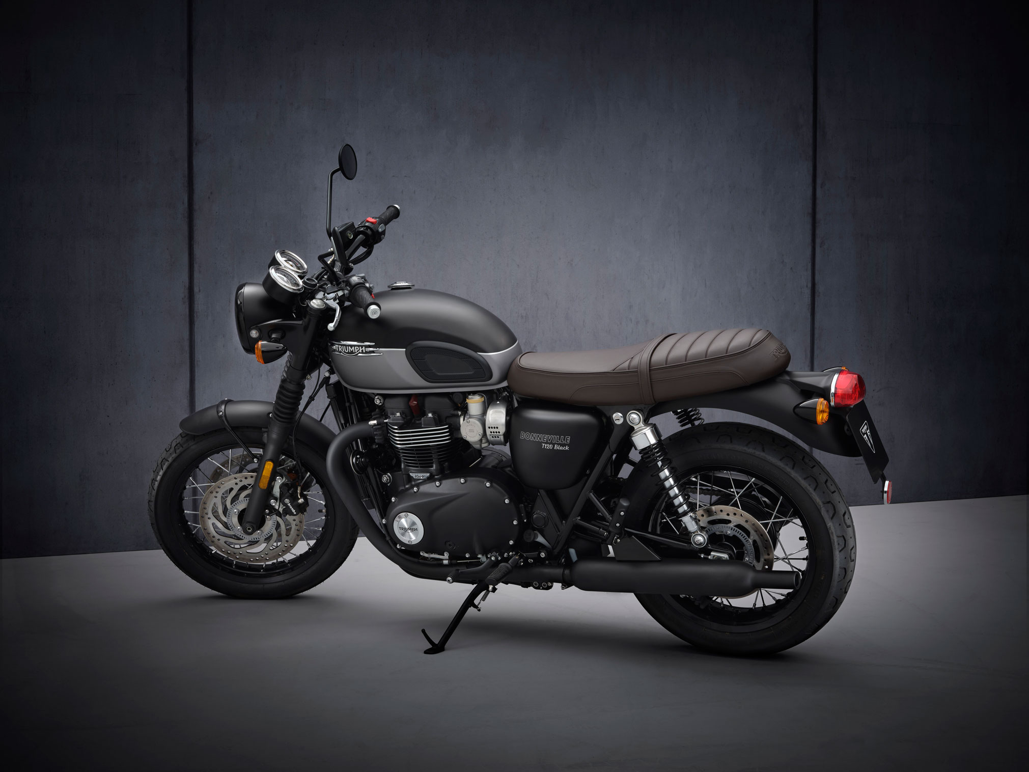 For the T120 Black, there is a choice of Jet Black or a sophisticated Matt Jet Black and Matt Graphite scheme with hand-painted silver coach lining.