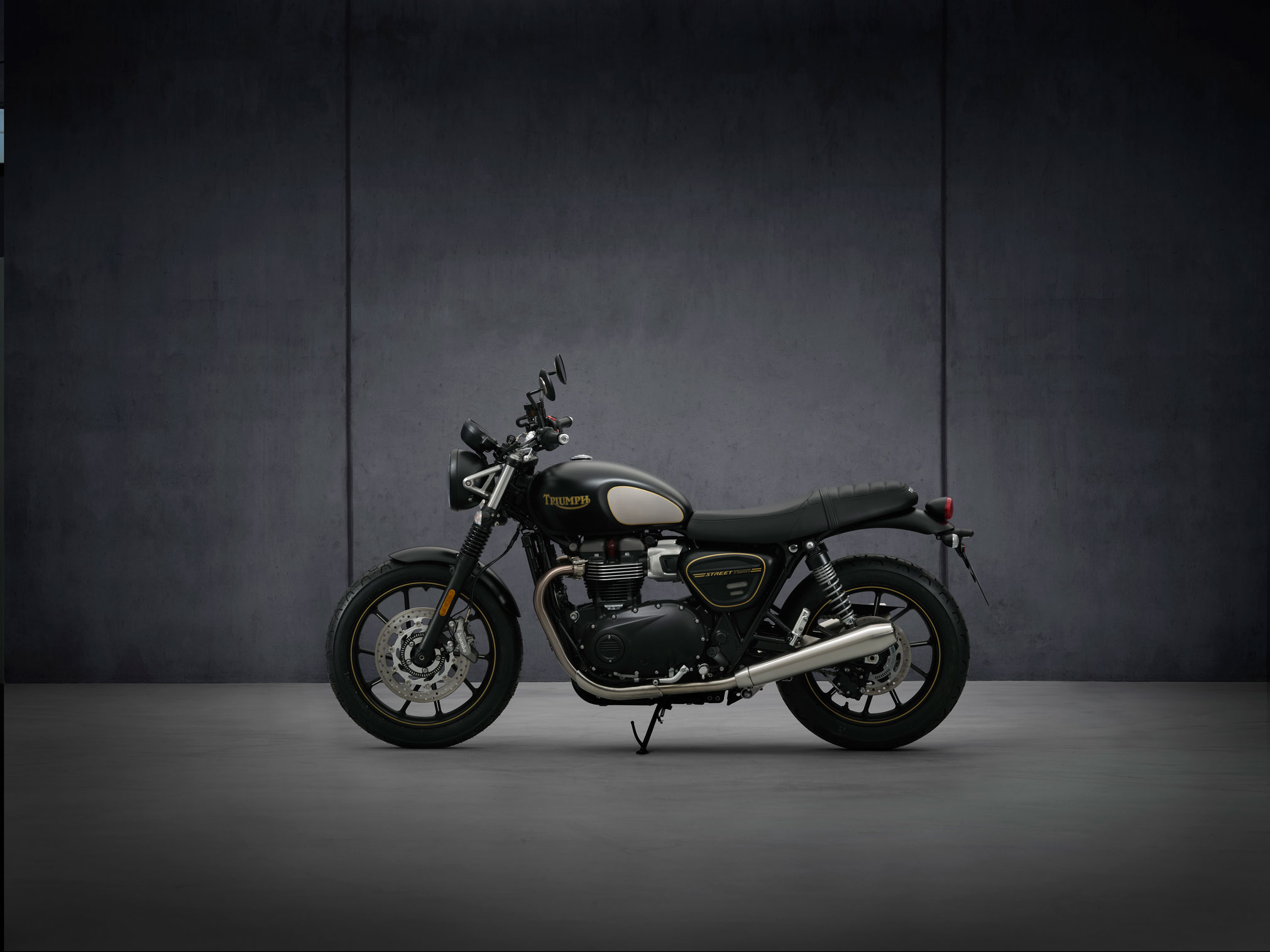 The Street Twin Gold Line limited edition comes with a stunning Matt Sapphire Black paint scheme with Triumph heritage logo and hand-painted gold lining.