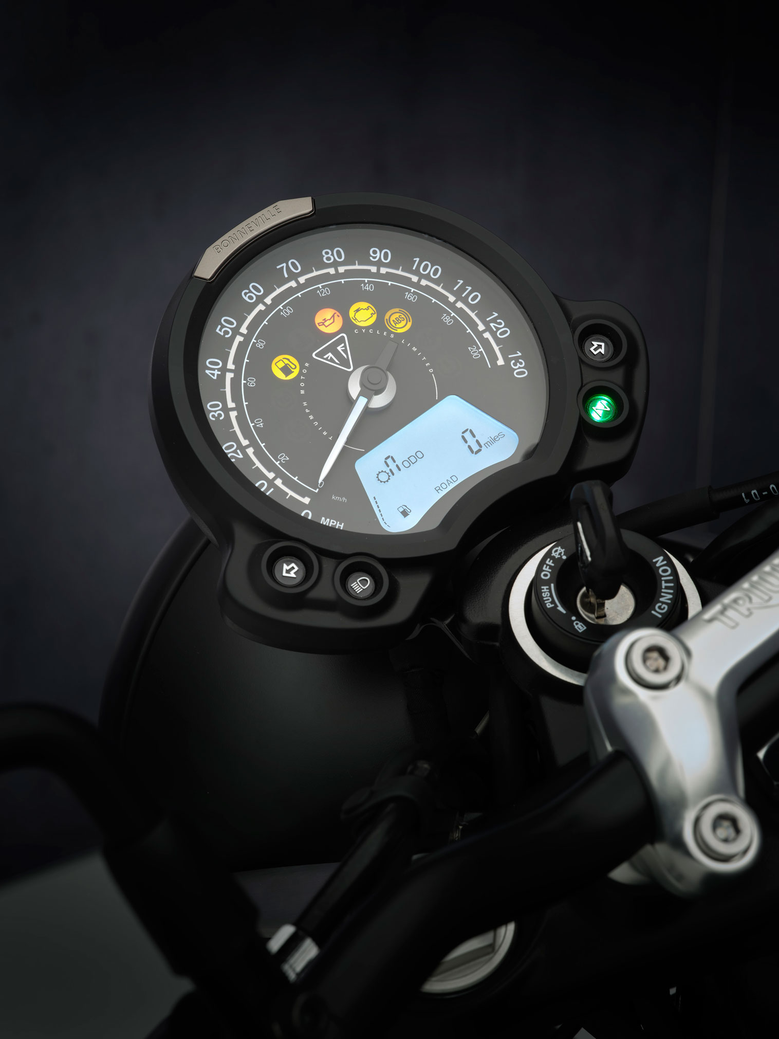 Contemporary technology, including ABS, switchable traction control, and an under-seat USB charging socket, is sensitively incorporated into the Street Twin to maximise rider safety and convenience.