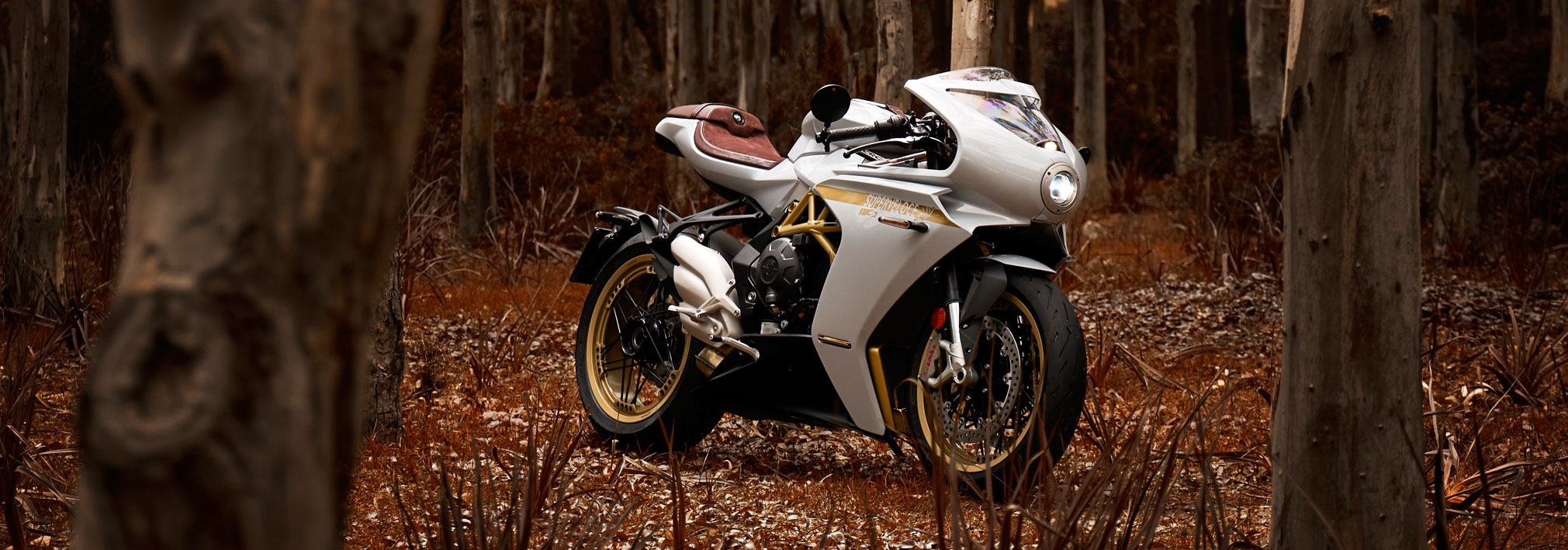 The first colour variant implies MV Agusta classic corporate colours, Ago Red and Ago Silver, relating to the first racing motorcycles developed by MV Agusta that dominated the Gran Prix racing scene for years. The gold wheels and frame details are inspired by the thoroughbred Italian racing machines from the past to create a rich distinctive, personalised feel far beyond the average production of motorcycle.