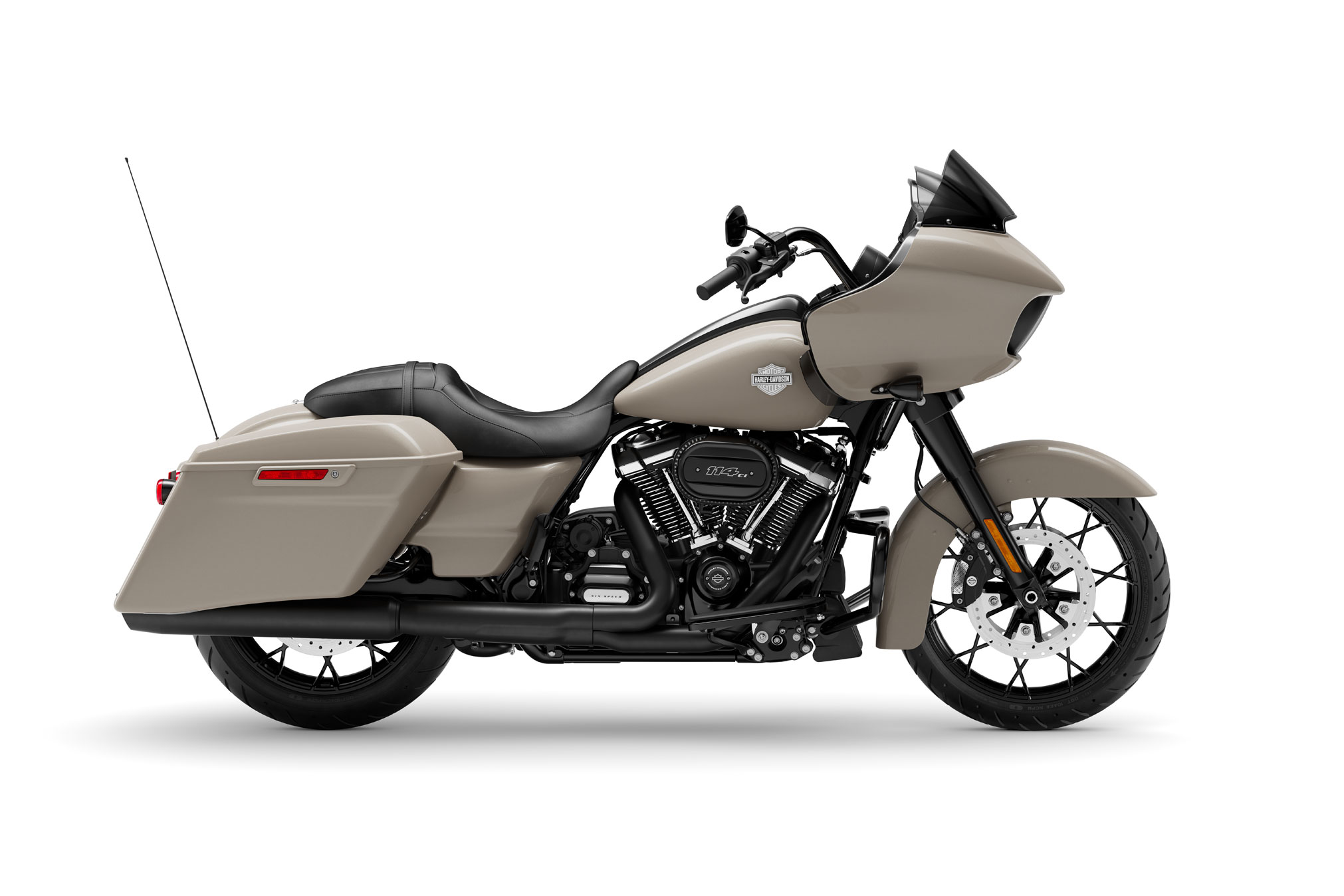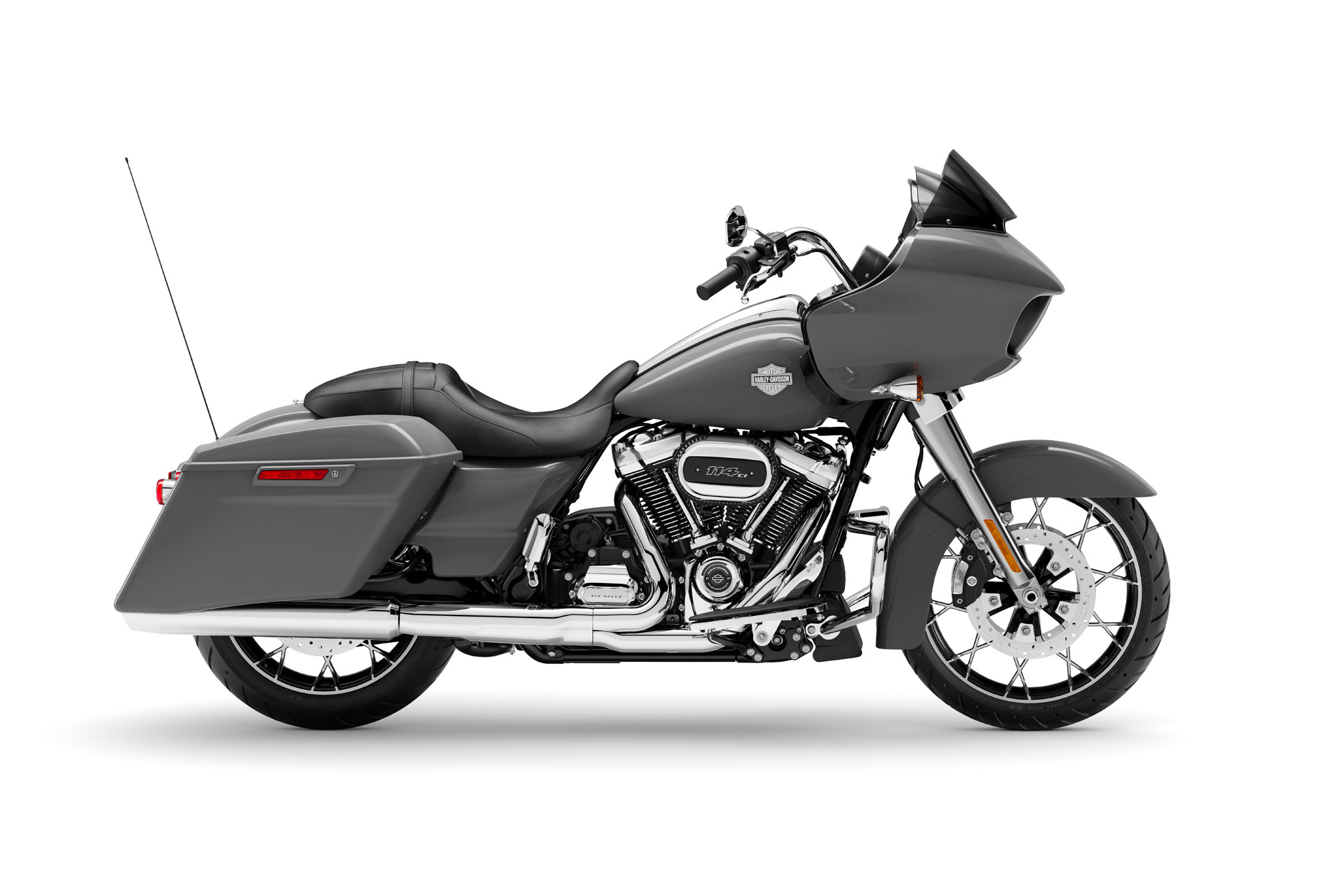 - Milwaukee-Eight® 114 V-Twin engine and sharknose fairing