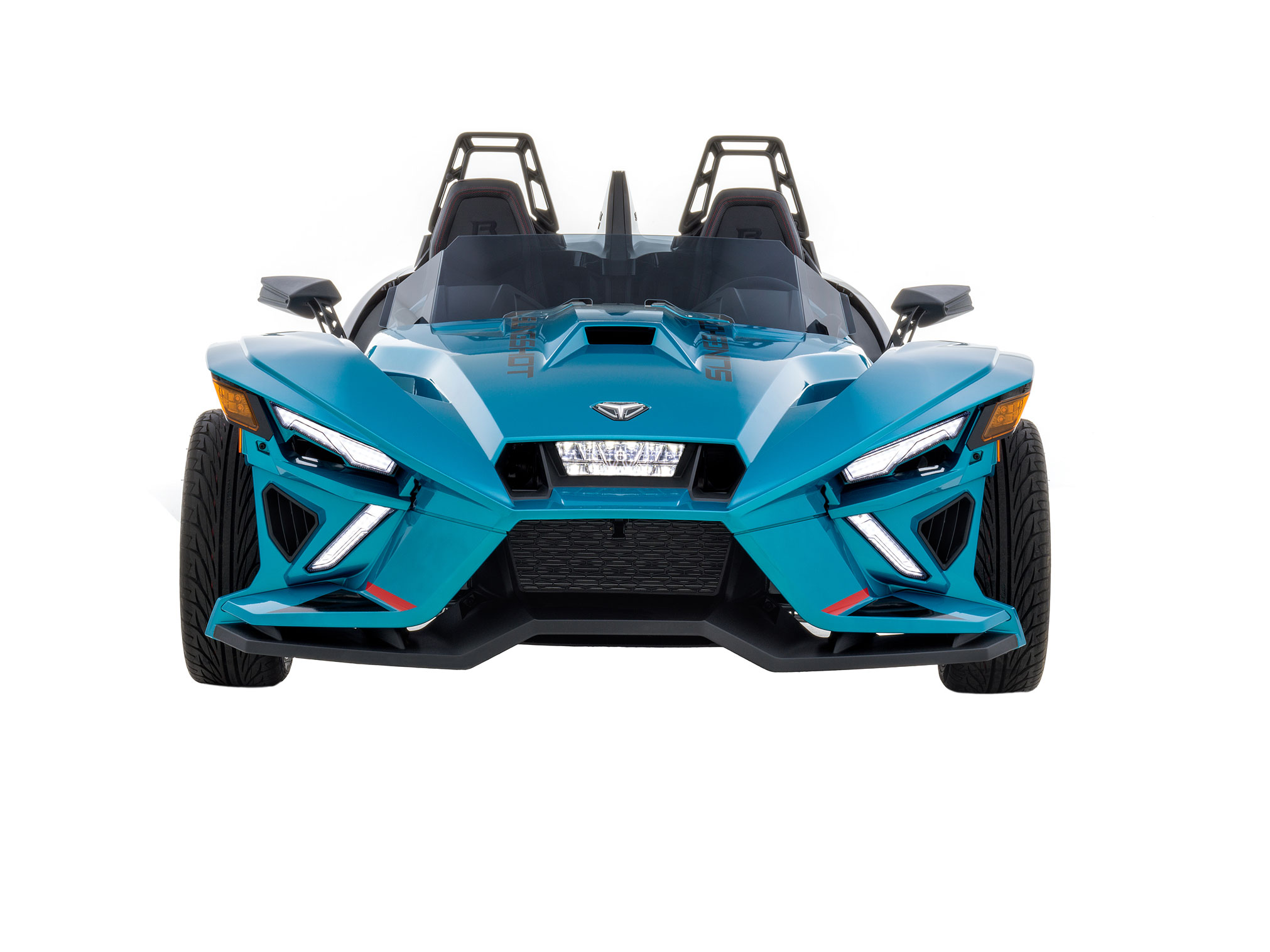 The Slingshot R will turn-heads with its enhanced, bold paint scheme, premium features and one-of-a-kind style. The Slingshot R packs the 203-horsepower ProStar engine, Brembo painted front calipers, paddle shifters (AutoDrive only), and the seven-inch touchscreen display powered by RIDE COMMAND with turn-by-turn navigation, connected services, and Apple CarPlay. 2022 R models are available in Pacific Teal Fade and Midnight Storm Fade, in both manual and AutoDrive.