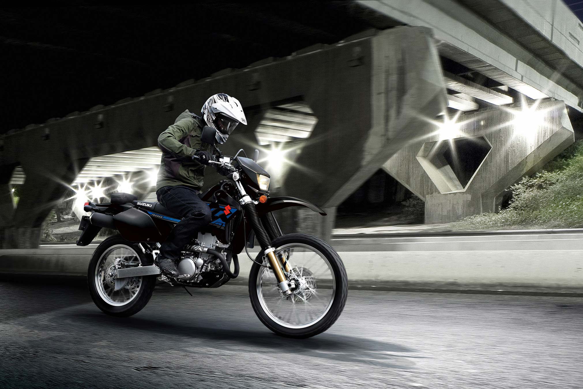 Suzuki’s Supermotard model, based on the proven DR-Z400S, combines Supermotard style and features in a narrow, lightweight, street-legal package