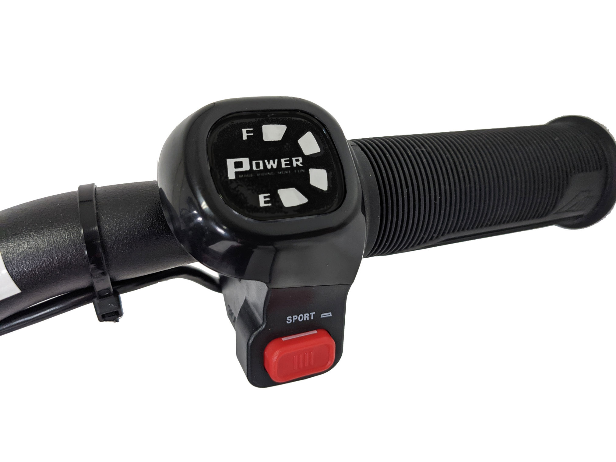 Large capacity batteries provide up to 1.5 hours of ride time depending on speed and load. Batteries are locked for safety and can be easily changed with the key. There is a battery life indicator located on the twist throttle, the seat height is fully adjustable and the drive chain is fully enclosed for safety.