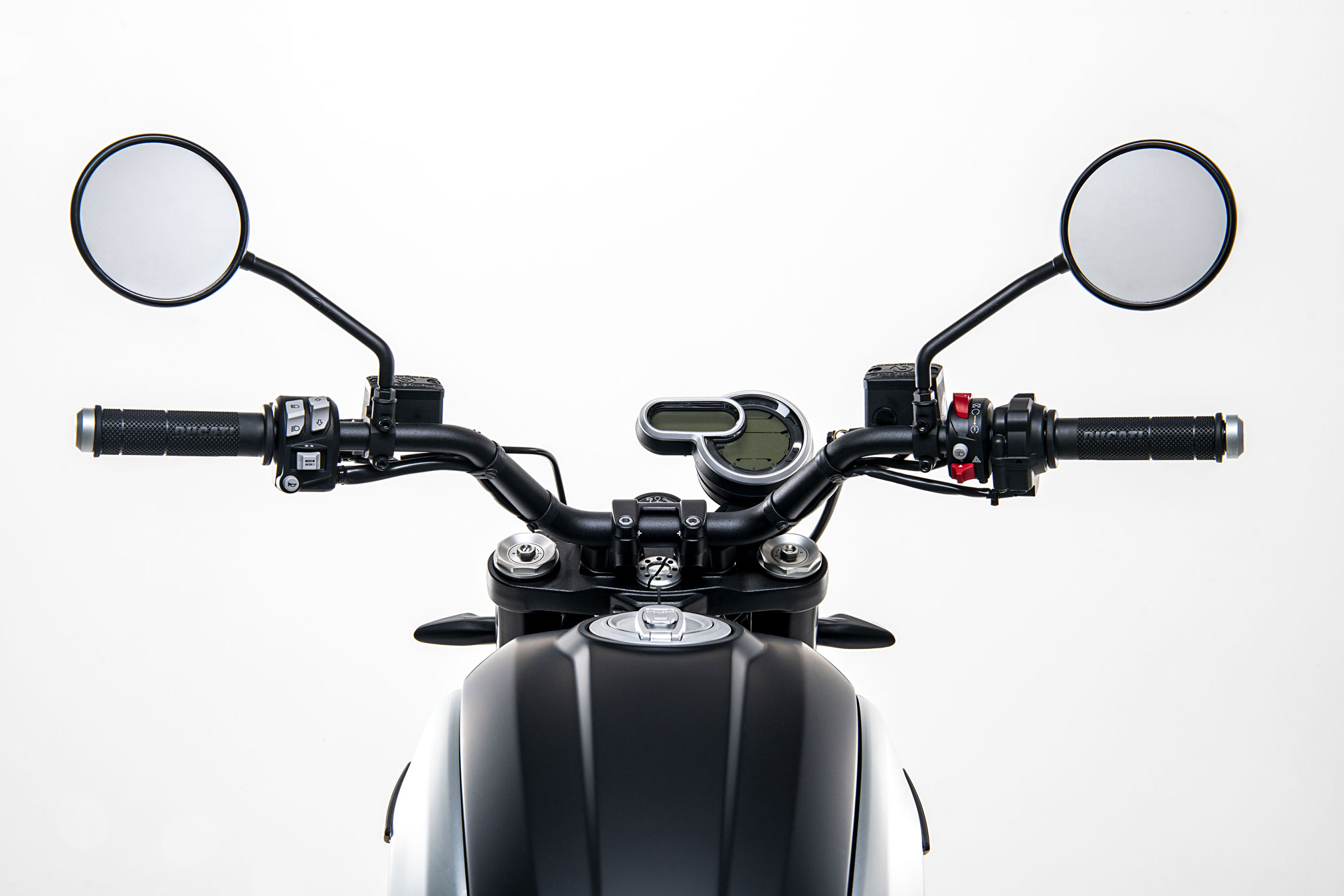 With tubular steel trellis frame with double top beam. Essential, like the Scrambler, it embraces the engine and is completed by an aluminium rear frame. It guarantees great agility in traffic as much as between hairpin bends in the mountains. Thanks to the wide handlebar, moving between urban obstacles is child’s play with the Scrambler, while the 1,514 mm wheelbase maximises stability, even at high speeds.