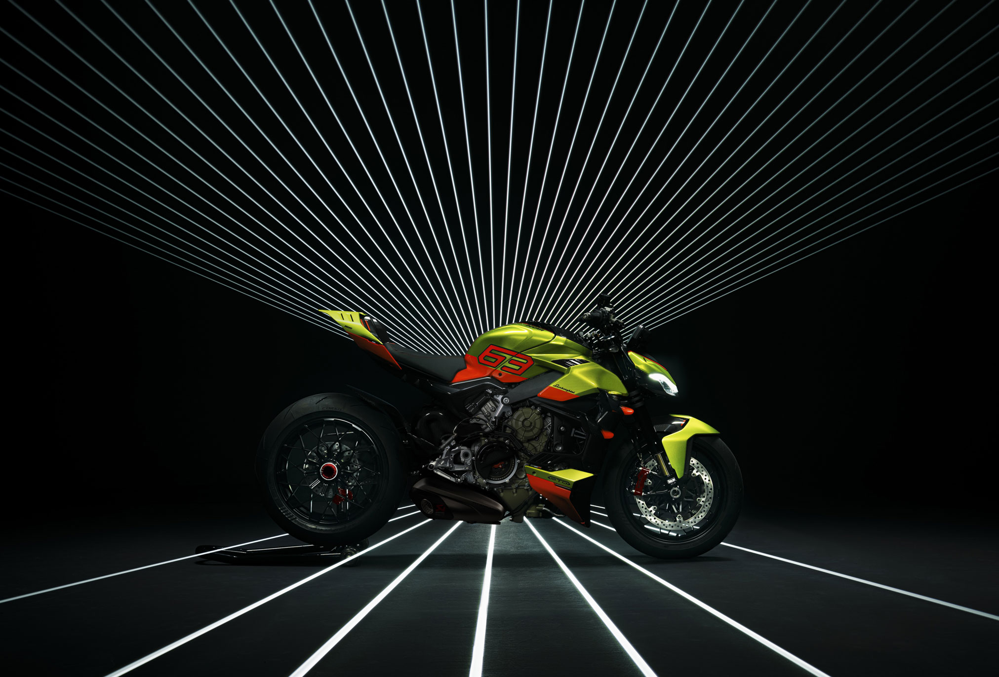 Ducati Streetfighter V4 Lamborghini: a numbered and limited edition of 630 + 63 units, inspired by the super-performing Lamborghini Huracán STO and built on the technical base of the Panigale V4 S 2023.
