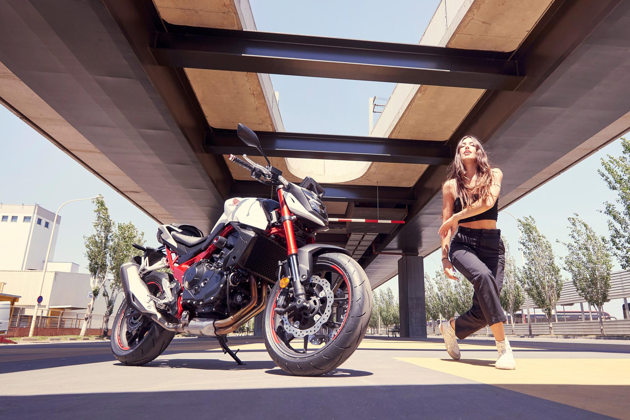 With styling led by the latest generation of creative minds in Honda’s Rome R&D facility, it’s been developed to attract younger riders looking for a serious move up. A totally new twin-cylinder engine hits hard with power and torque and features a comprehensive electronics package. High-quality Showa suspension works through a new, lightweight steel frame with high-spec running gear that allows the rider to exploit all the potential available. And minimalist look with uncompromising angles define a sharp, modern streetfighter style.