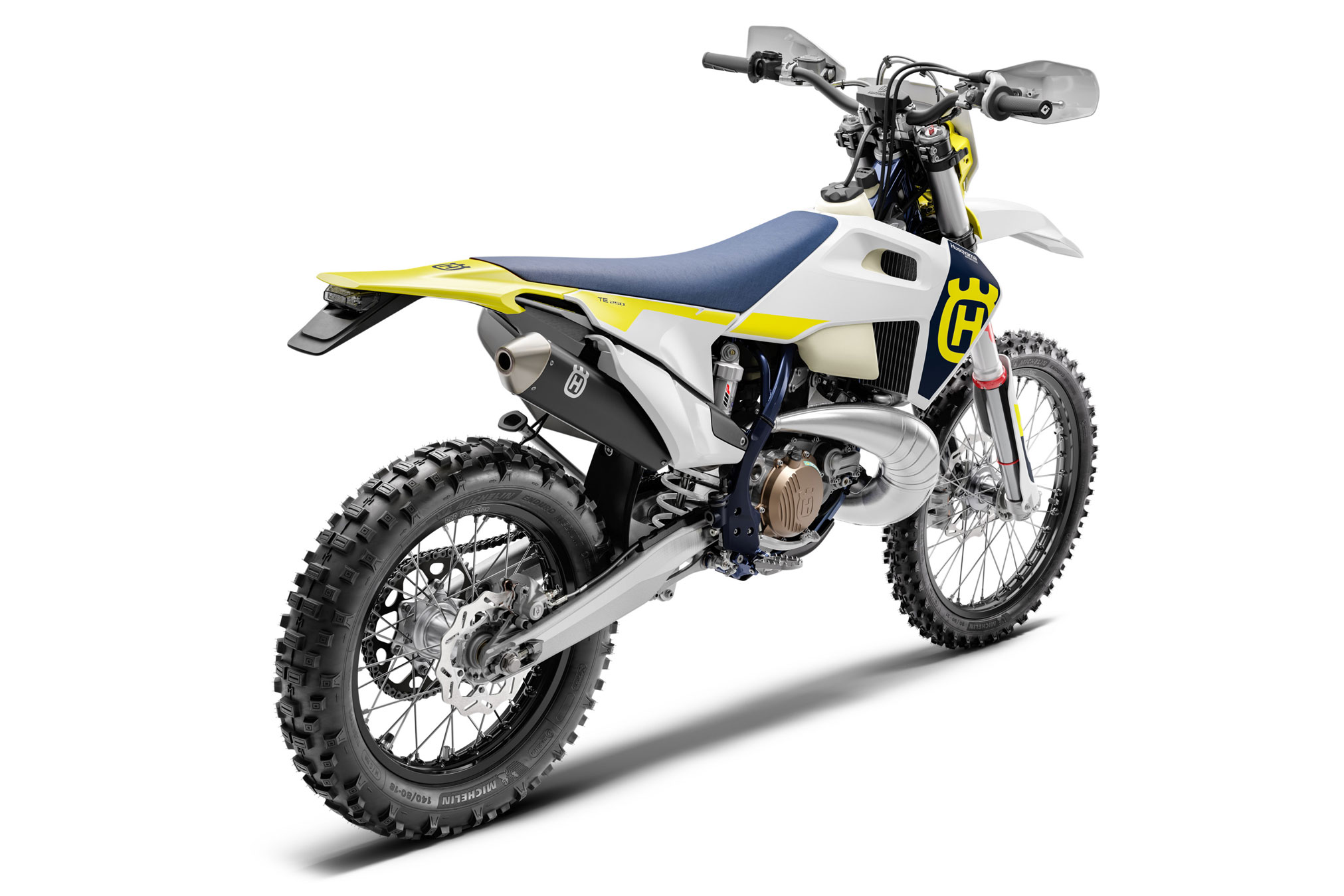 The TE 250 features a bodywork which clearly showcases Husqvarna Motorcycles’ progressive approach to offroad motorcycles while the Swedish inspired dark blue and electric yellow graphics create a distinctive look. The ergonomics are specifically tailored to deliver great comfort and control. As a result of extensive testing, the slim contact points make shifting between riding positions easier and allow the rider to flow with movement. The flat seat profile, together with the seat cover texture, deliver superior comfort and control in all conditions.