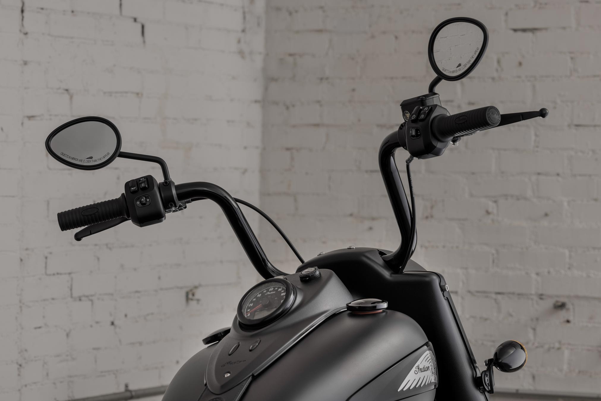 Inspired by the look of custom bikes, an open front fender exposes the 19″ 10-spoke contrast-cut front wheel, with the iconic Indian Motorcycle headdress leading the way.