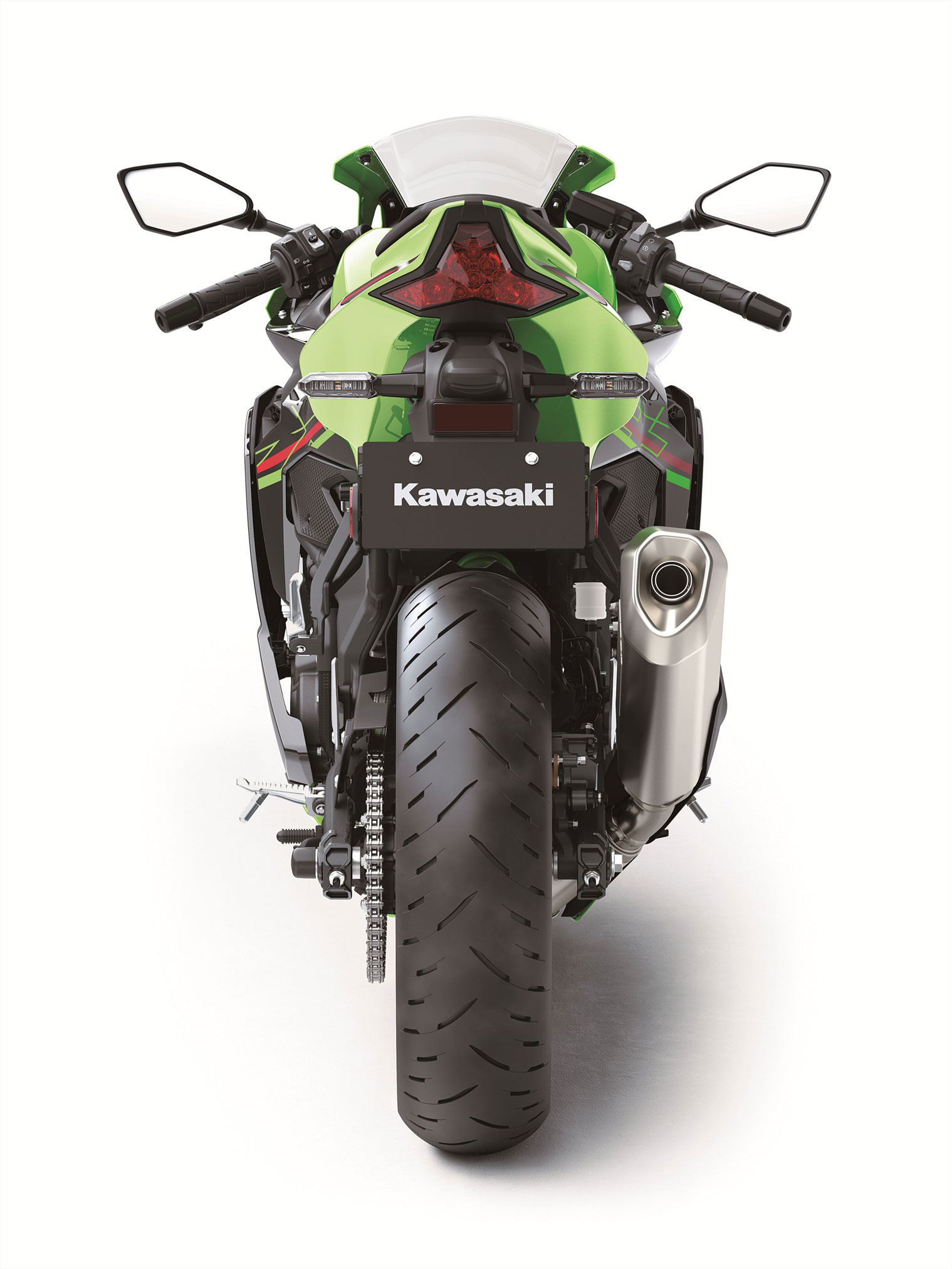 | Instrumentation | Full-colour TFT screen with digital speedometer, digital bar-style tachometer, gear position indicator, shift indicator (tachometer flashes), fuel gauge, odometer, dual trip meters, current and average fuel consumption, remaining range, average speed, riding time, coolant temperature, clock, battery voltage, lap timer (Circuit Mode only), Kawasaki service reminder, oil change reminder, integrated Riding Mode, KTRC, and Power Mode indicators, smartphone call and mail notices, Bluetooth indicator, Economical Riding Indicator, and KQS indicator |