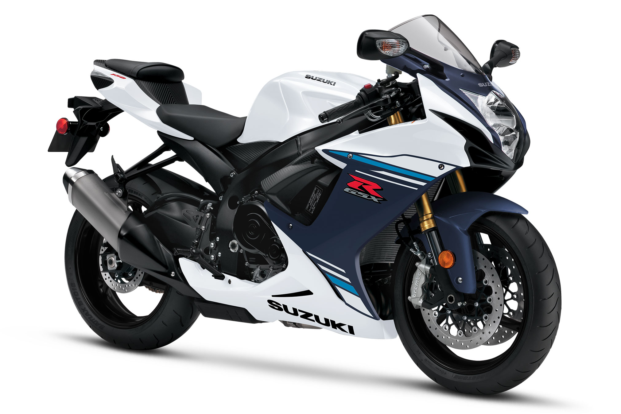 The 2023 GSX-R750 is available in new Pearl Brilliant White and Metallic Matte Stellar Blue, or Glass Sparkle Black and Glass Matte Mechanical Gray paint schemes.