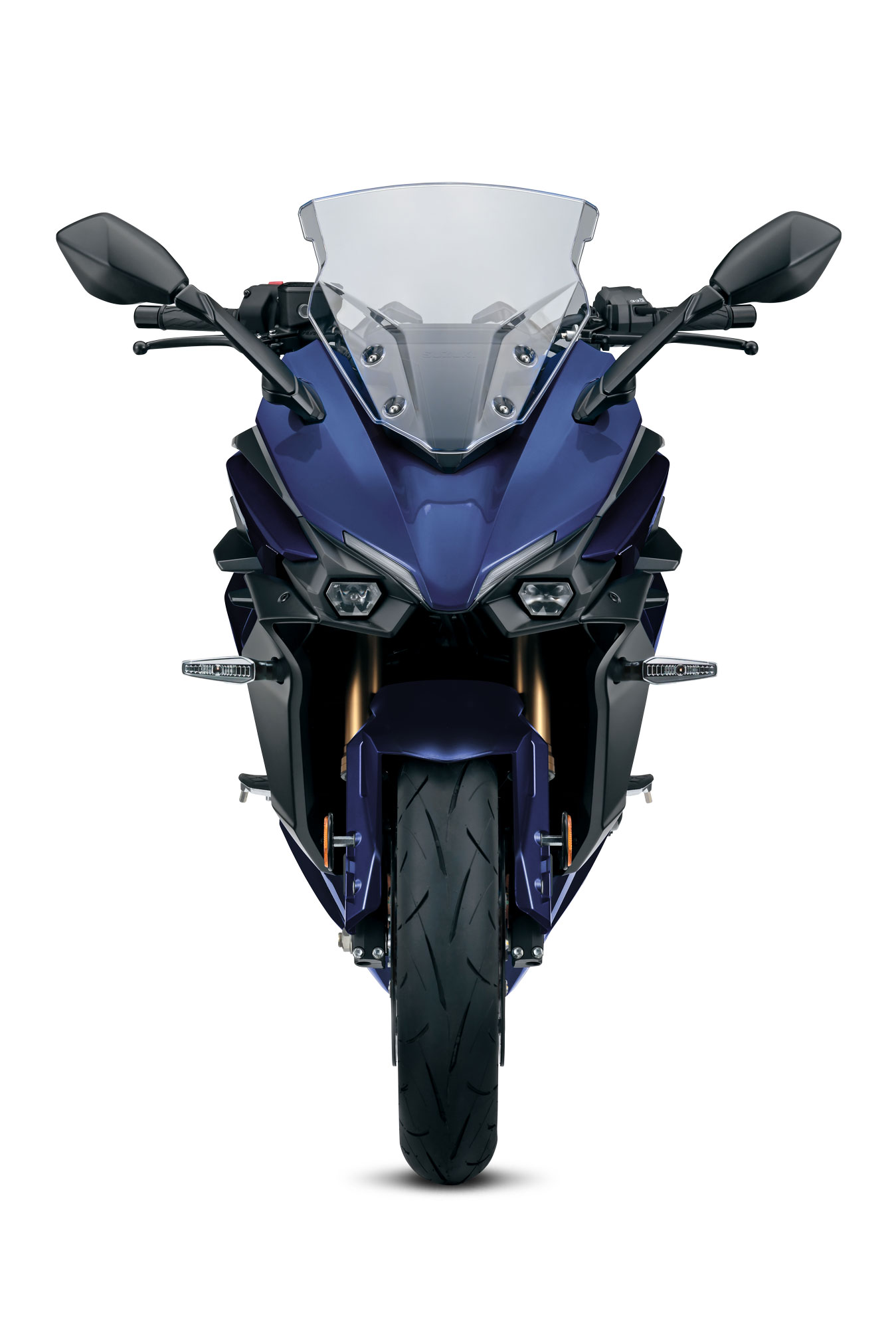 – The compact, dual LED headlight assembly complements the GSX-S1000GT’s aerodynamic styling, and its independent high- and low-beams feature mono-focus LED technology, which brightly illuminates the road ahead. A wide, V-shaped LED position light positioned above makes the GSX-S1000GT clearly visible to others and creates an illuminated face unlike that on any other motorcycle.