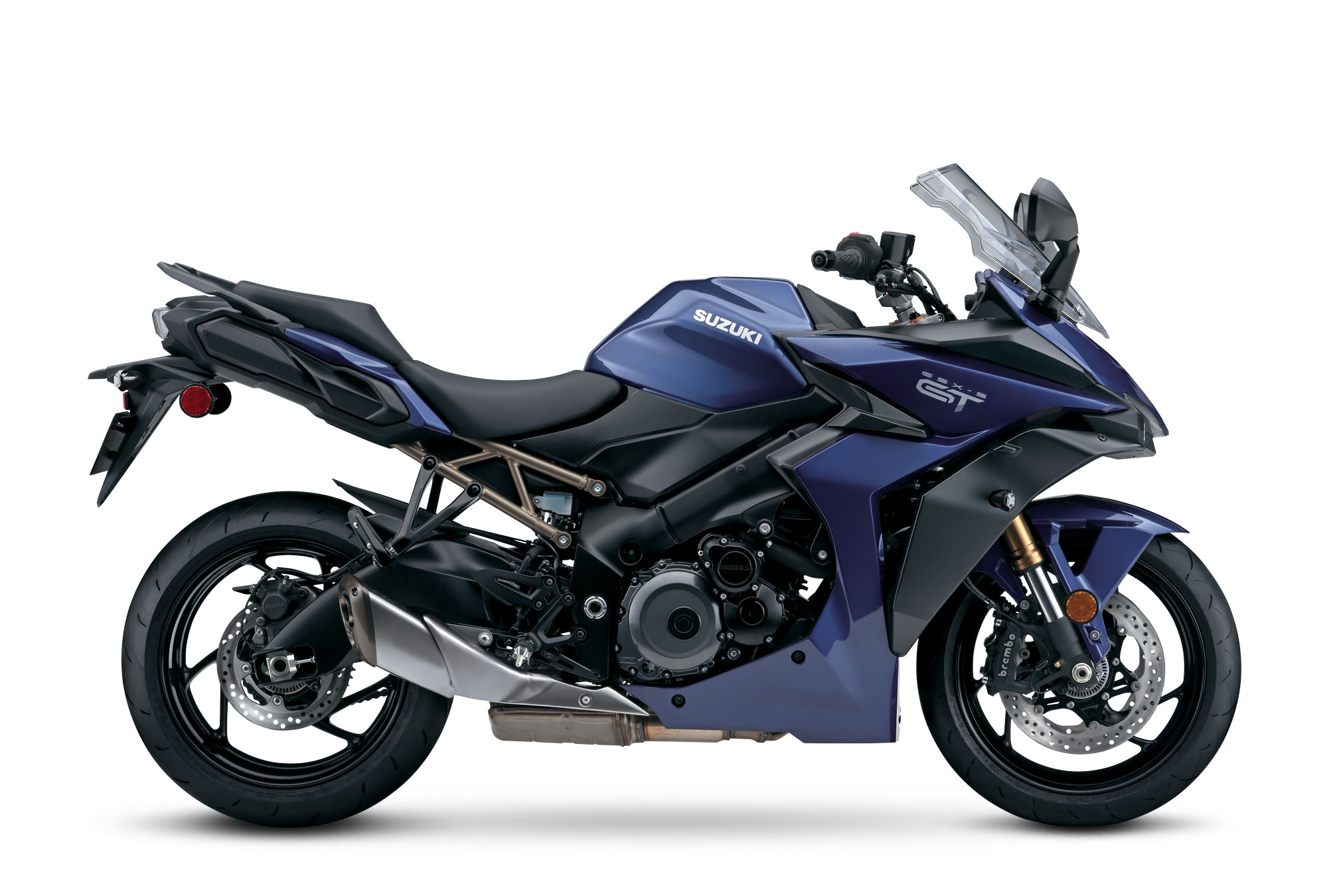 Stately in Metallic Reflective Blue paint with understated identity logos further establishes the GSX-S1000GT as motorcycling’s Grand Touring leader.