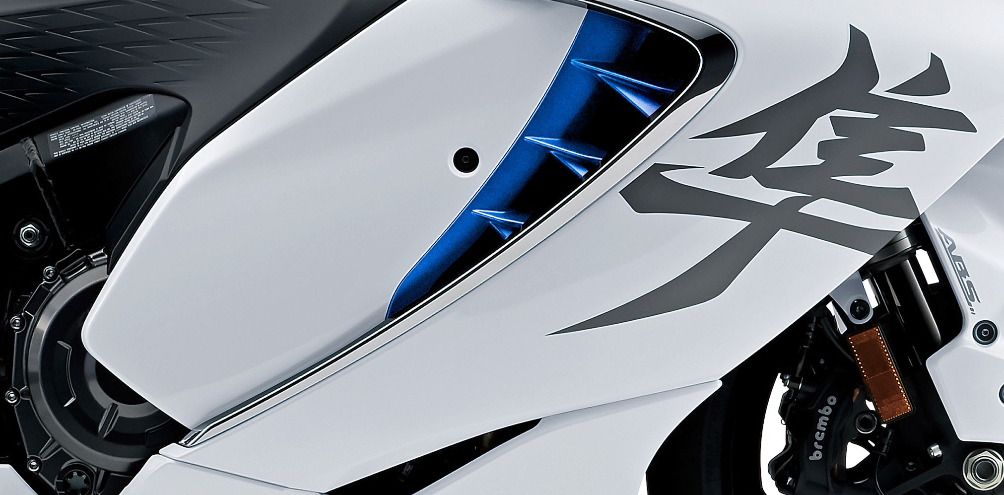 The fairing design permits high air flow through the radiator, increasing cooling efficiency as compared to the prior generation Hayabusa. Air flow is increased by 8% when the Hayabusa is in motion and is approximately 7% better when the cooling fan is moving air during low- to mid-speed riding.