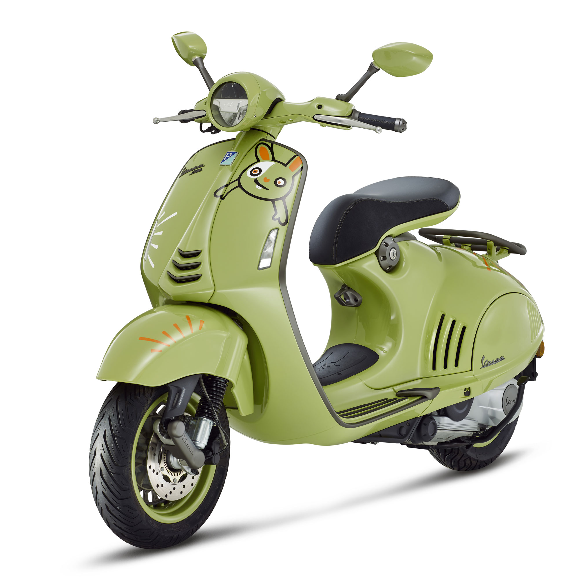 A unique version, with a “bunny” peeping out of the bodywork, confirm Vespa 946 as a contemporary interpretation of Vespa values. The brand’s classic green is, in fact, reworked to be sparkling.