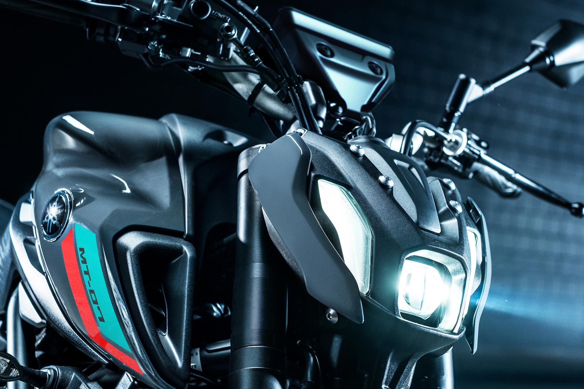 The MT-07’s aggressive look further enhances its distinctive appeal. Bold colors and graphics integrate with the minimalist stripped-back design and structural elements to emphasize pure Hyper Naked character. With a silhouette that is synonymous with the MT Series’ signature statement of torque and power, the MT-07 showcases a tight, compact and powerful appearance. - LED Projector Lighting