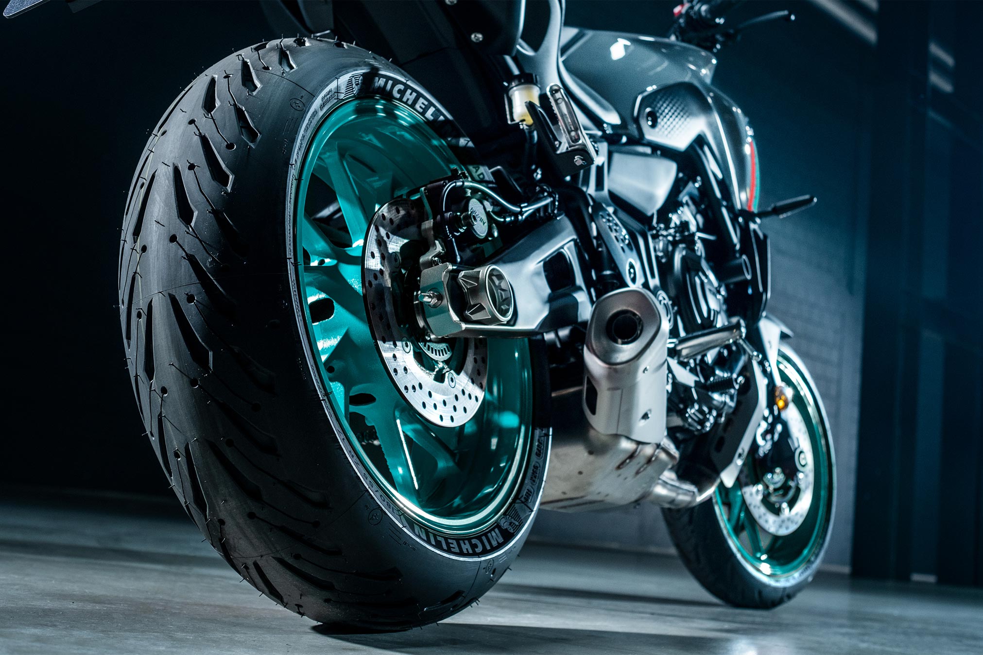 The MT-07’s high-strength steel frame provides an optimized balance of rigidity for nimble, agile handling. Using the engine as a stressed member of the chassis allows for a lighter, more compact main frame design, contributing to the bike’s low wet weight of only 406 pounds. - Lightweight Wheels