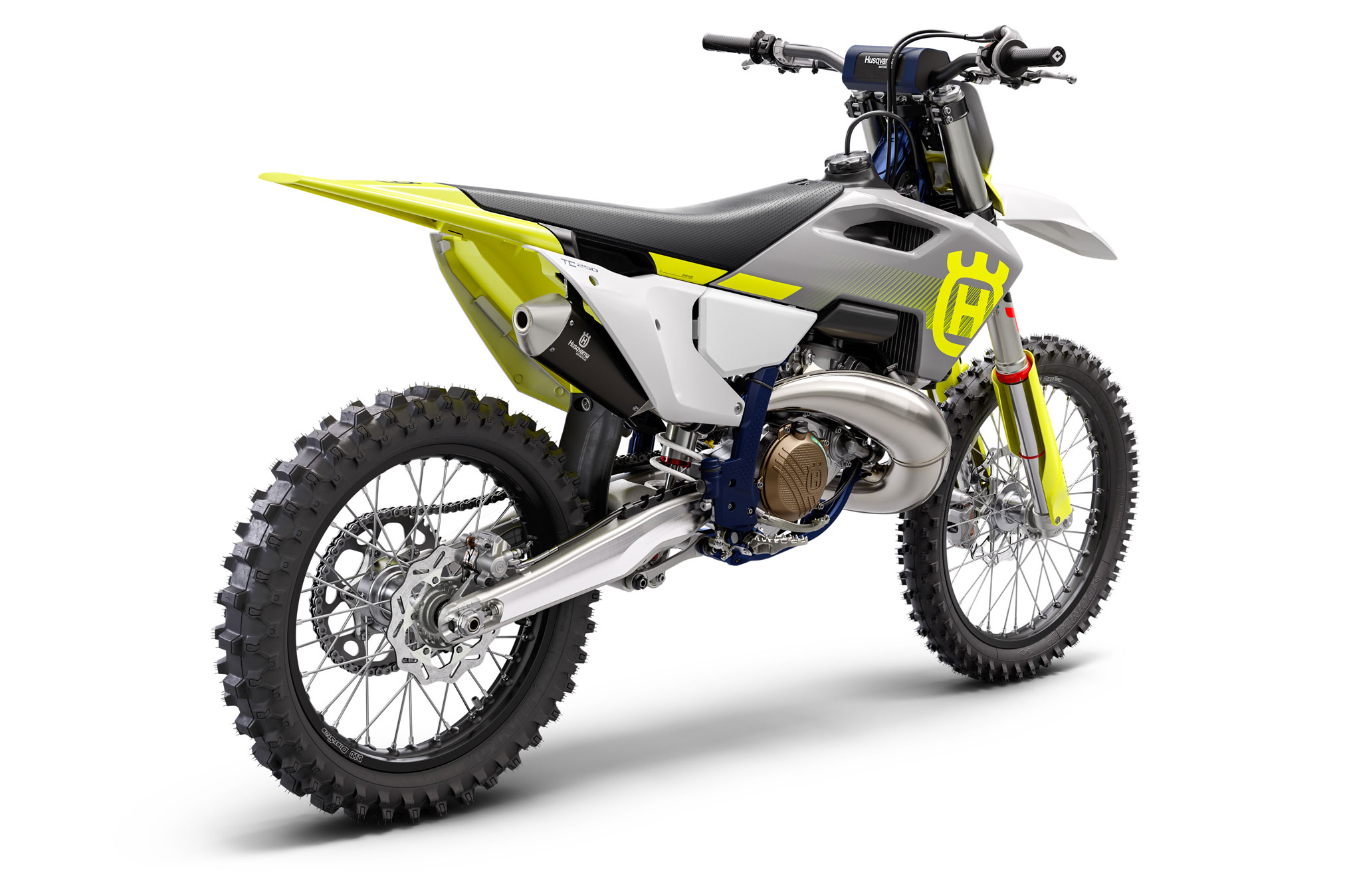 Assembled with CNC-machined hubs, strong spokes, and black-anodised alloy rims by D.I.D, the wheels of the TC 250 are fitted with DUNLOP GEOMAX MX33 Motocross tyres which feature a proven block-within-a-block design for more progressive cornering and superior grip. For improved on-track agility and stability through ruts, the TC 250 is fitted with a 110/90-19 rear tyre while a 80/100-21 front tyre ensures optimal handling on a variety of riding surfaces.
