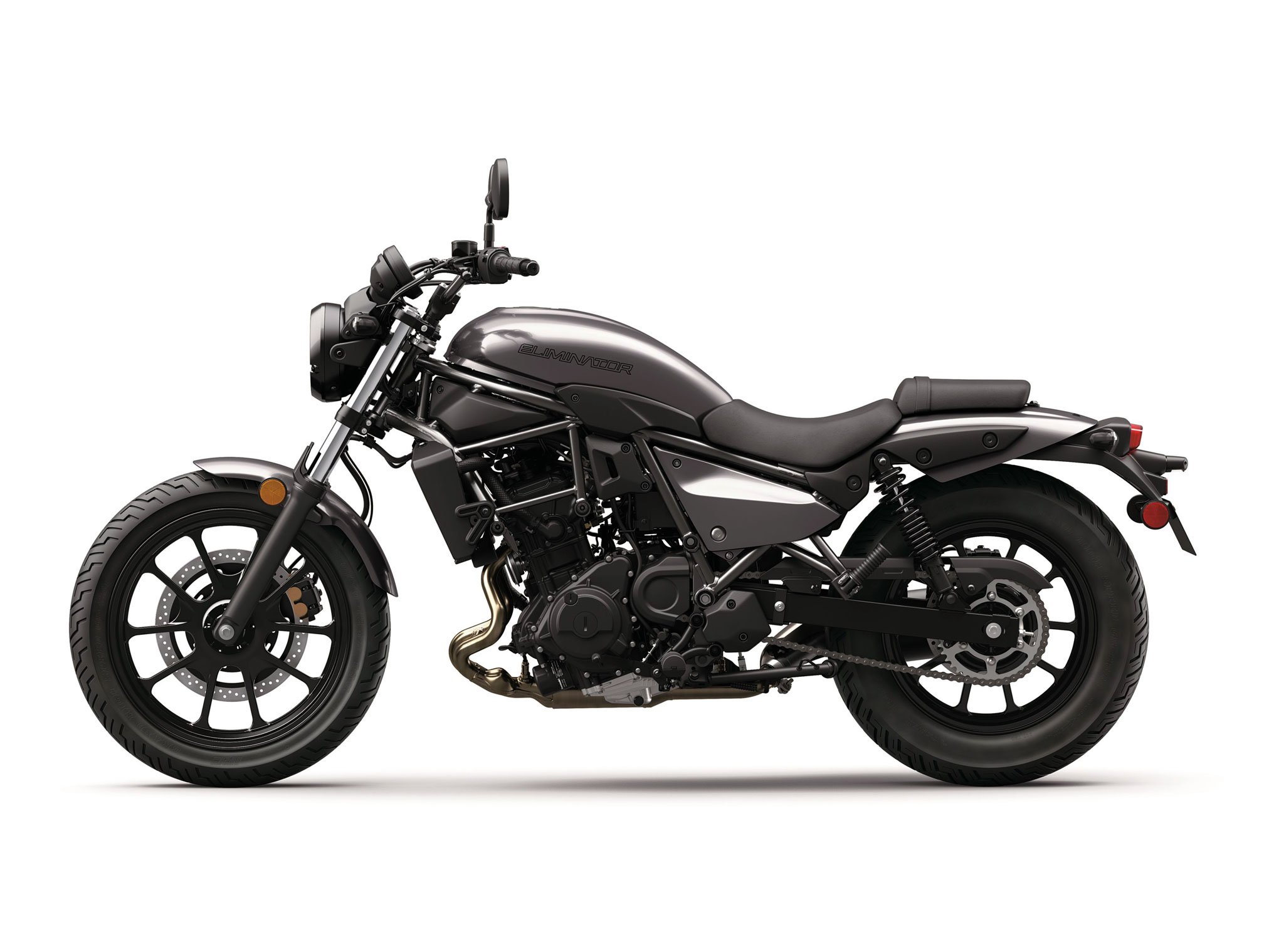 • Twin-shock rear suspension maintains the Eliminator heritage and contributes to ride comfort.