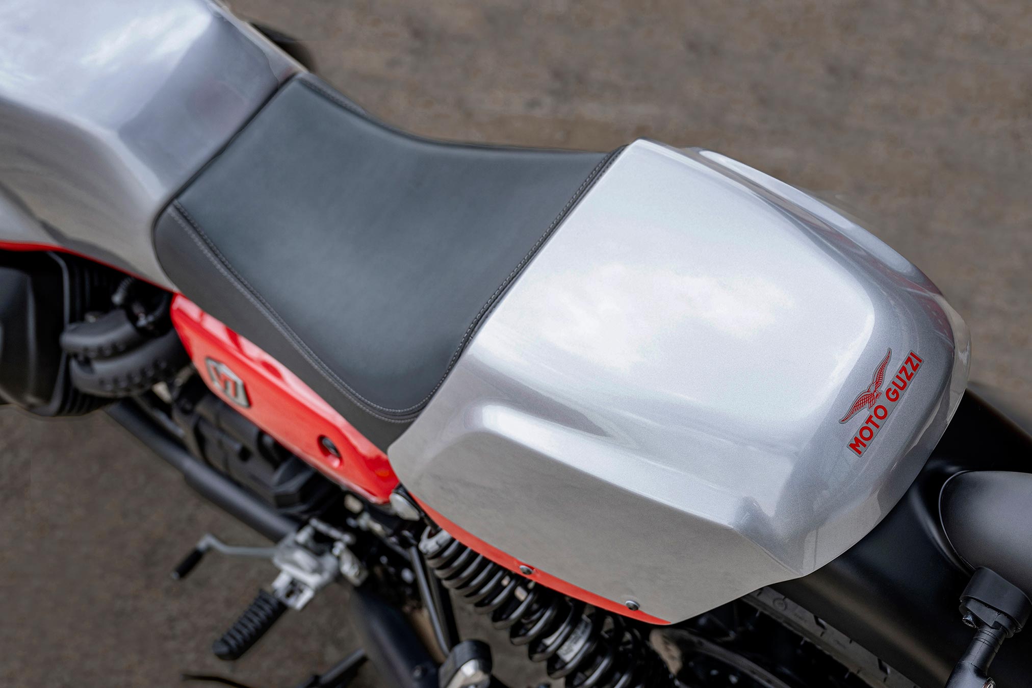 The V7 Stone Corsa features a saddle that looks like a single-seater but is in fact certified for two people, a detail that further showcases the bike’s dynamic, sporty lines.