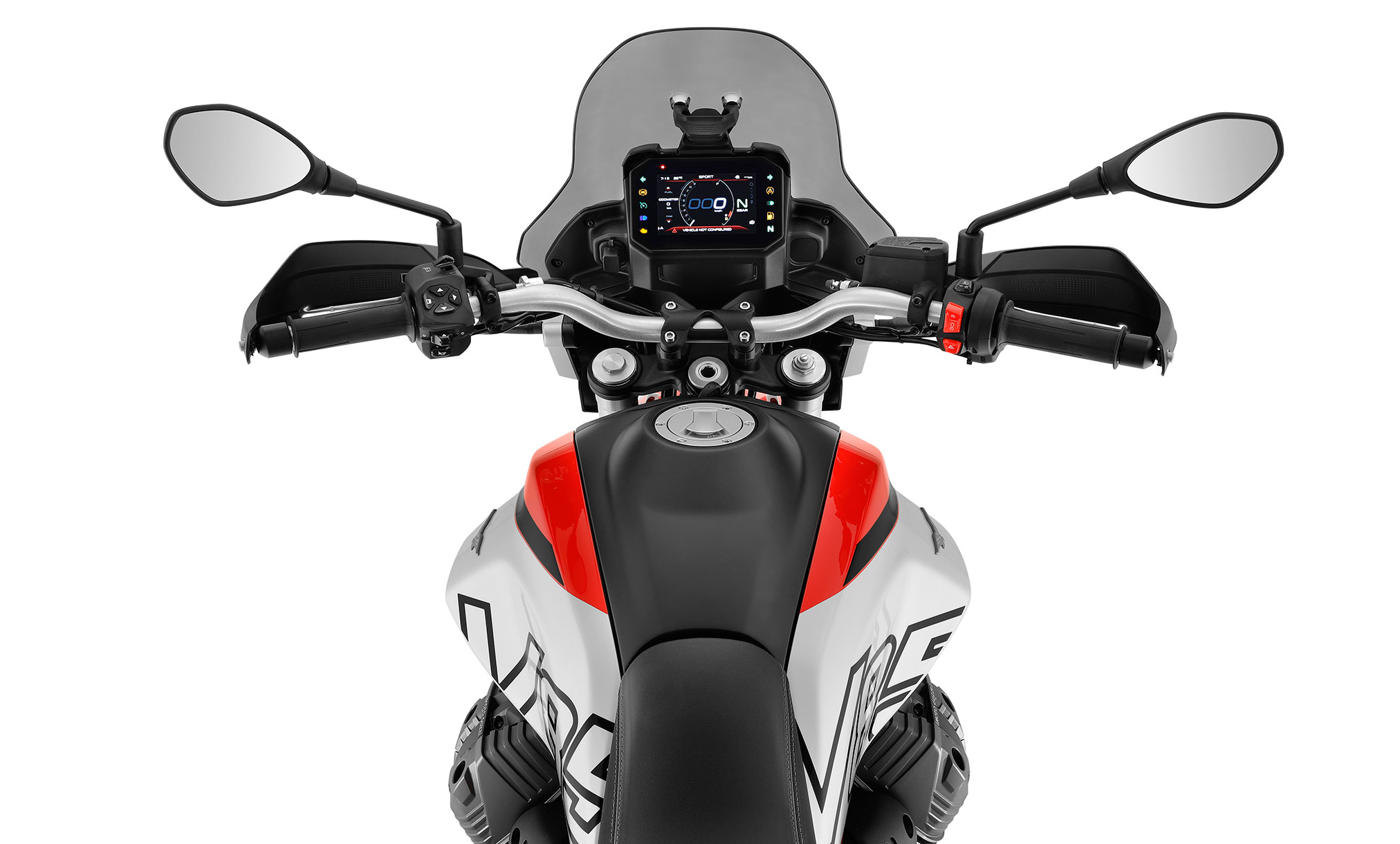 - Heated grips (standard on V85 TT Travel): without the need for additional buttons and controlled via the left-hand switch-cube.