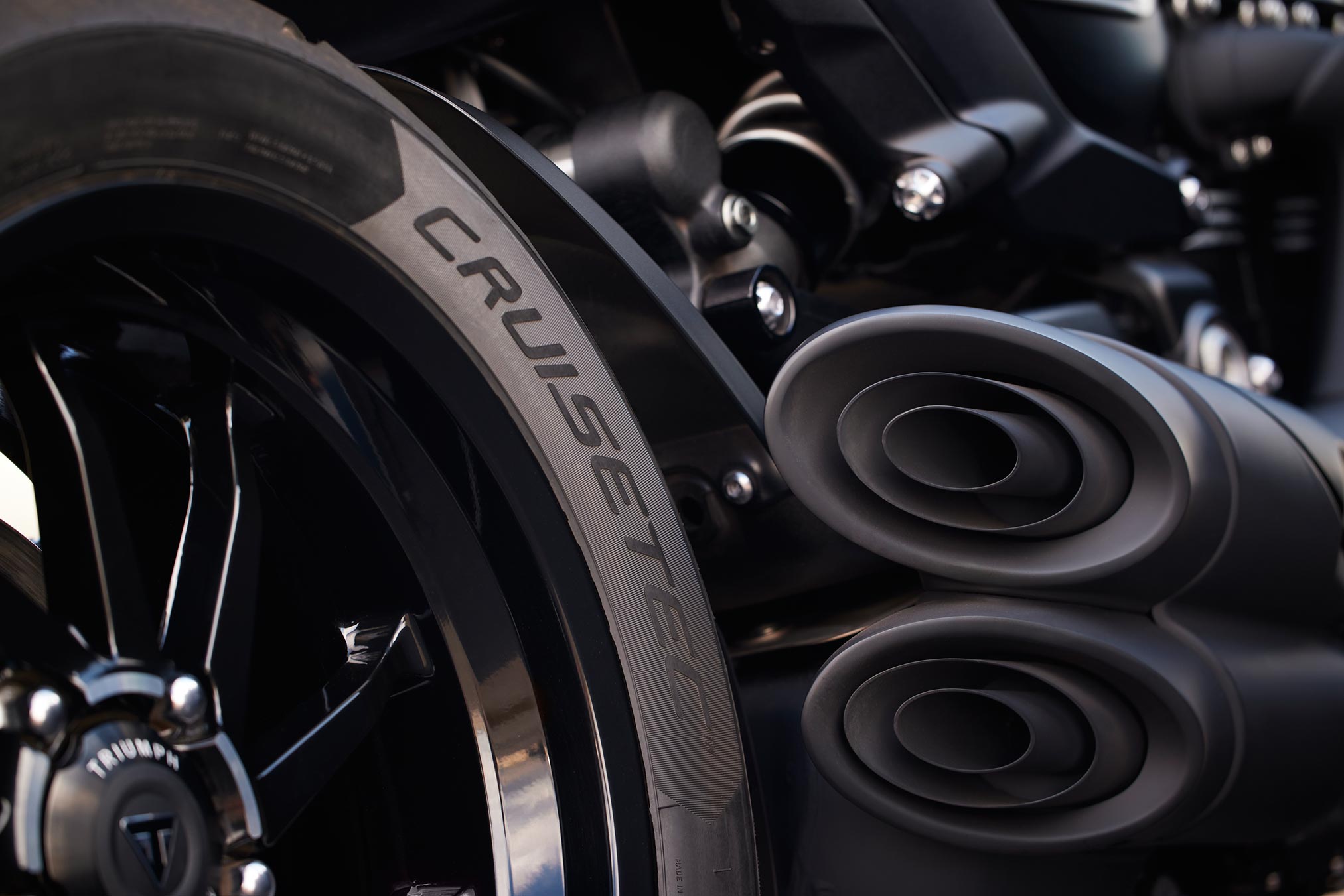 The lightweight sports-styled 10-spoke cast aluminum wheels contribute to the Rocket 3 Storm’s easy handling and are finished in black for added attitude.