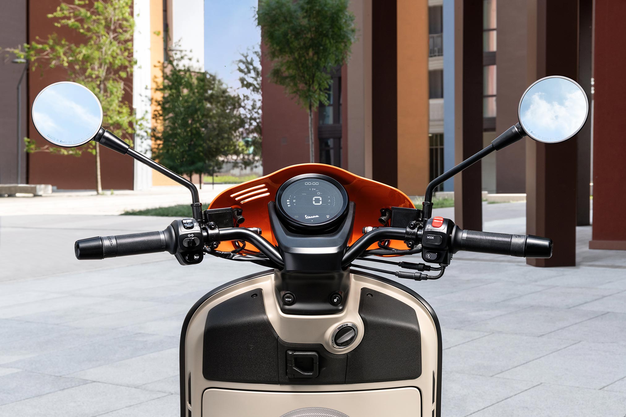 The adoption of a new LCD instrumentation allows a thorough range of trip information to be displayed (maximum speed, average speed, current consumption, average consumption, range, and battery charge state), as well as all the notification relative to calls, messages and music, if the vehicle is connected to the smartphone using the VESPA MIA (available as a separate accessory).