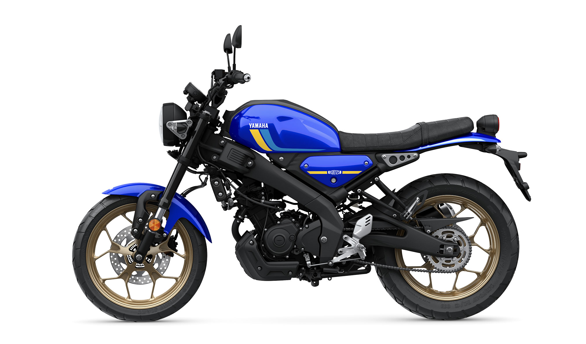The naked chassis allows you to see many of the high quality components that underline the XSR125 Legacy’s outstanding specification. From the spoked aluminium wheels and gold rims through to the beautifully finished engine, chassis and painted mudguards, this 125cc Sport Heritage bike combines a high specification with pure looks and timeless style.