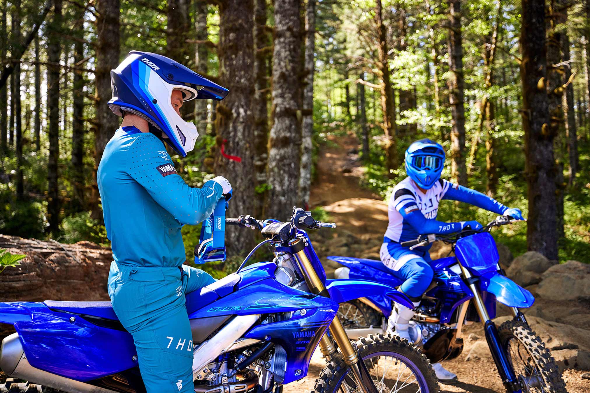 The highly developed aluminum bilateral beam frame features precisely tuned flex characteristics for competition-ready performance. The forged section at the swingarm pivot, and improved engine mounting brackets provide a nimble lightweight feeling in tight, technical terrain while still providing control in fast sections. As always, Yamaha’s class-leading KYB® suspension ensures maximum control and traction.