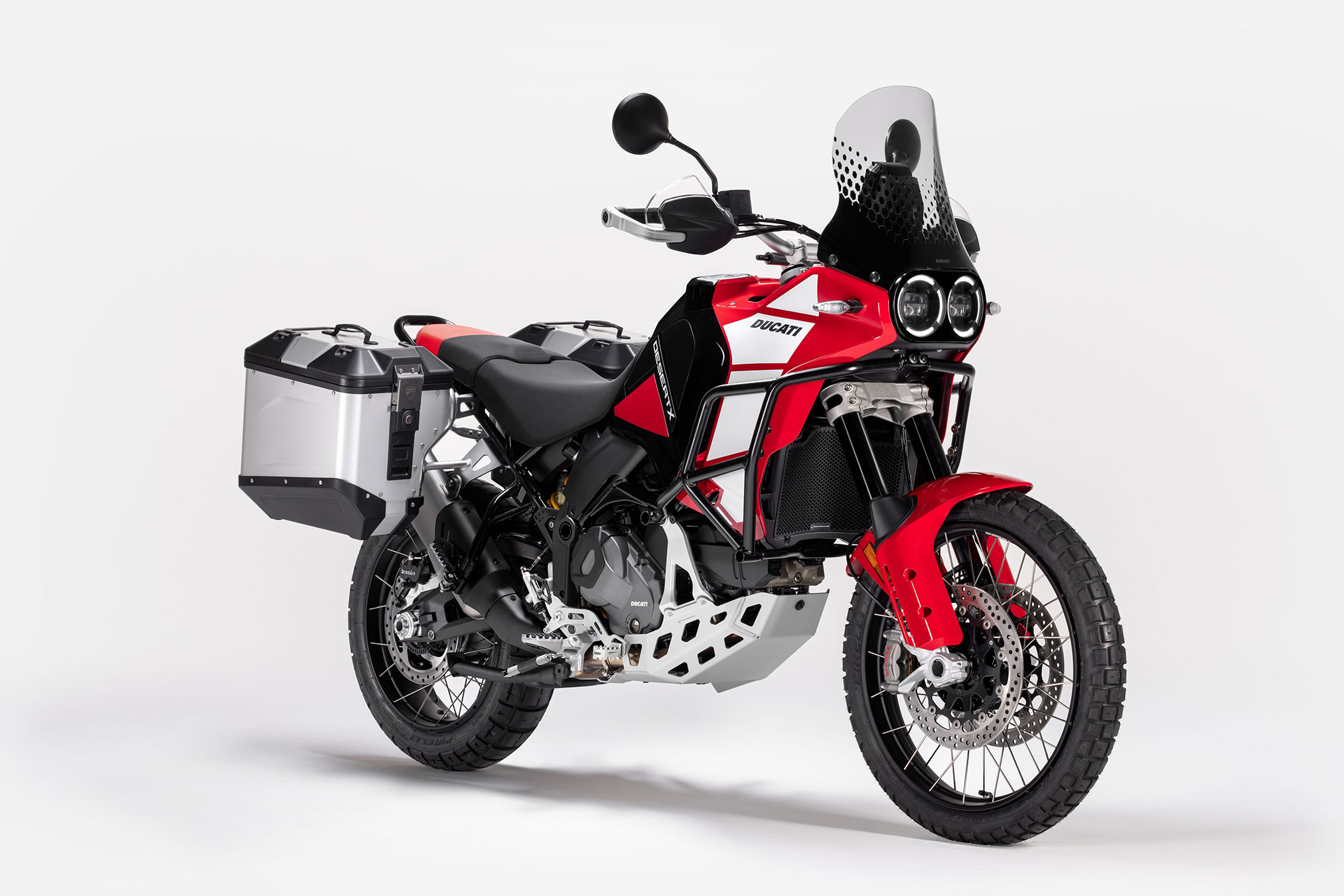 The DesertX Discovery trim includes a dedicated Thrilling Black and Ducati Red livery created with adhesive graphics to protect surfaces from scratches and a comprehensive package of standard accessories to make it even better suited to exploration.