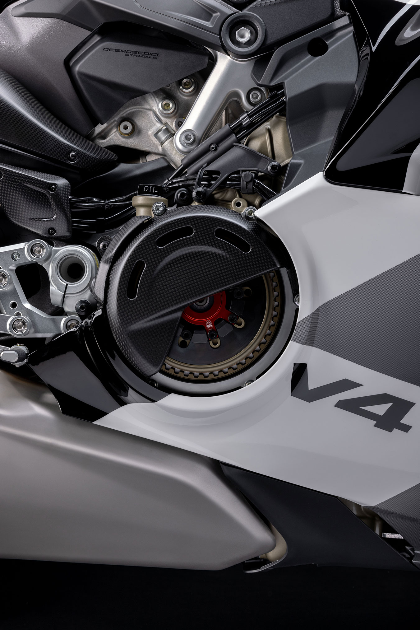 Riding Modes, Power Modes, Race eCBS, Ducati Vehicle Observer (DVO), Ducati Traction Control (DTC) DVO, Ducati Wheelie Control (DWC) DVO, Ducati Slide Control (DSC), Engine Brake Control (EBC), Ducati Brake Light (DBL), Chain guard in carbon fibre