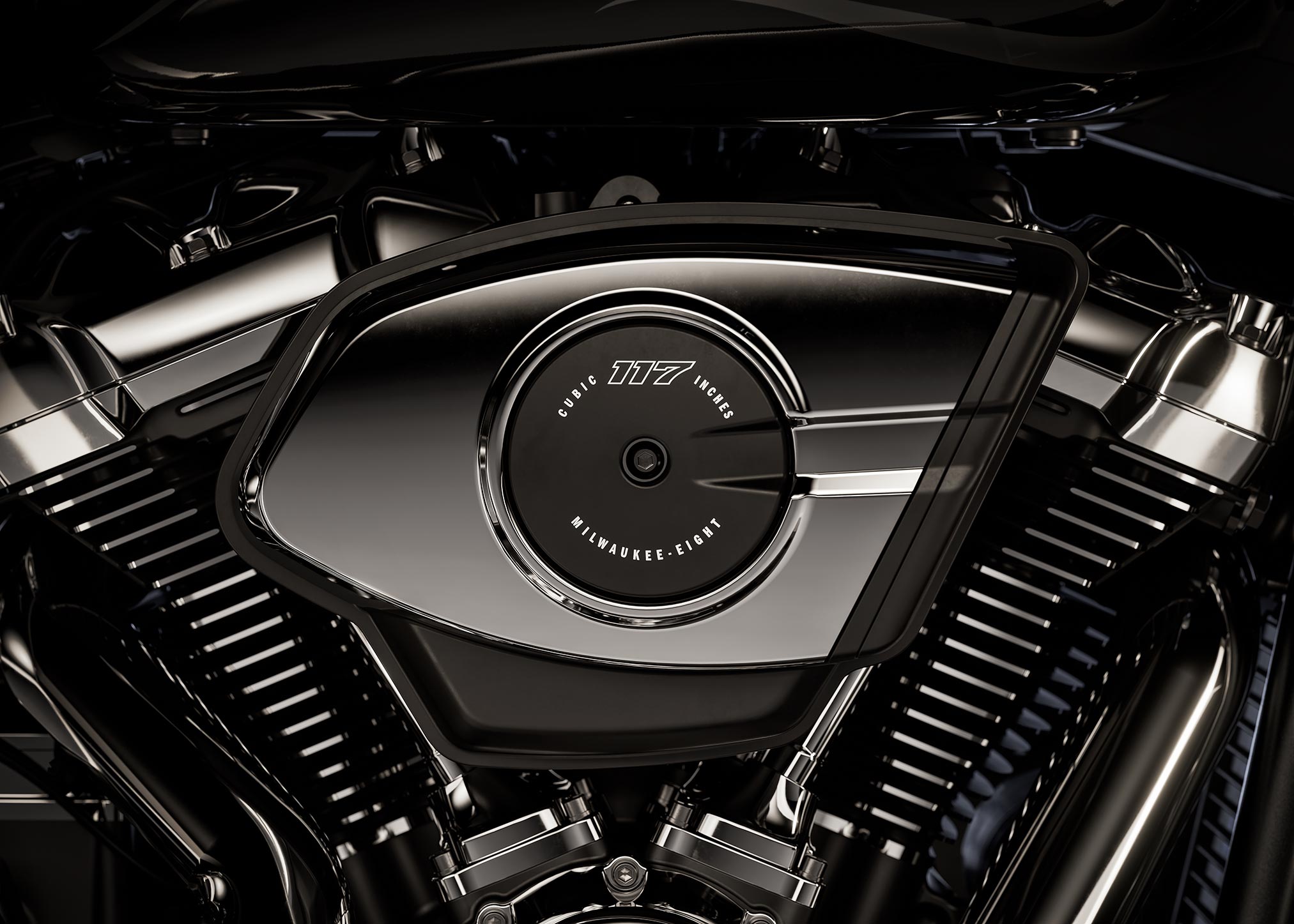 - Milwaukee-Eight 117-cylinder head cooling system further optimizes engine temperatures, especially in low-speed riding situations and hot weather, compared to 2024 Twin-Cooled Milwaukee-Eight 114 engine.