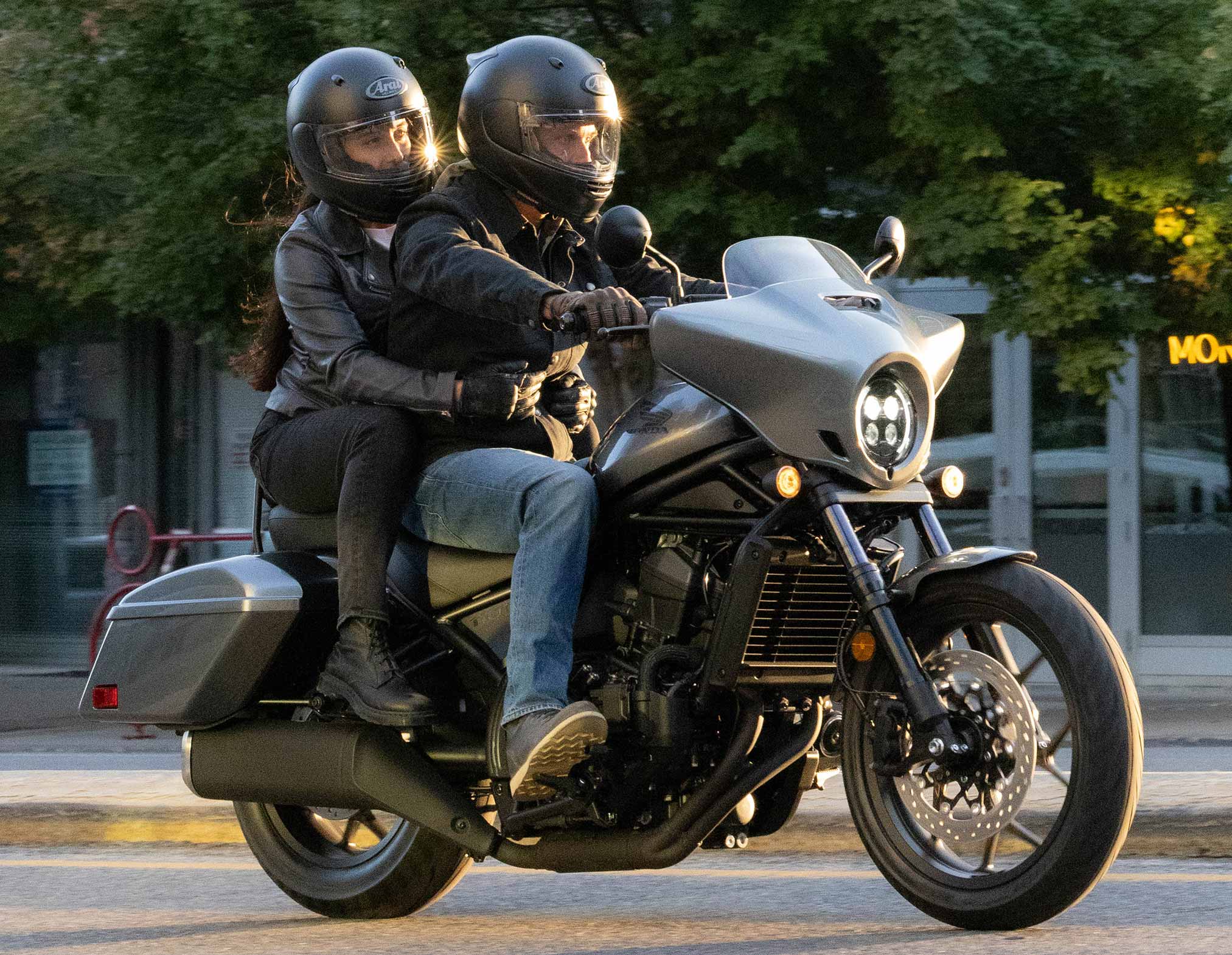 - Rebel 1100T: For the touring-minded rider, the Rebel 1100T comes with a protective handlebar fairing and roomy, color-matched hard saddlebags, perfect for all-day and overnight excursions.