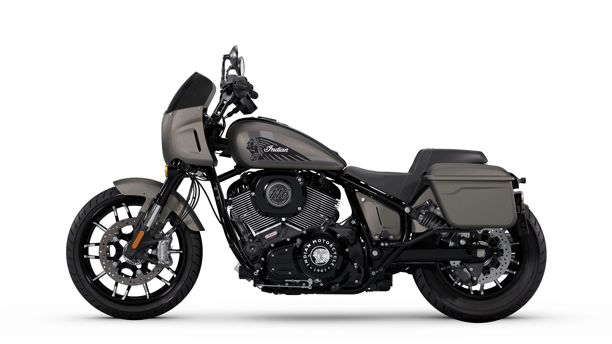Answering the call from riders, Sport Chief RT delivers custom-inspired style straight from the factory. The all-new, all-weather Locking Rigid Saddlebags add sleek style and more than 37 litres of practical storage, capable of fitting an entire set of riding gear, including boots, pants, a jacket and gloves. While standard on Sport Chief RT, the Locking Rigid Saddlebags are compatible and available as accessories across the entire Indian Chief line, offered in color-matched premium paint or a textured black finish.