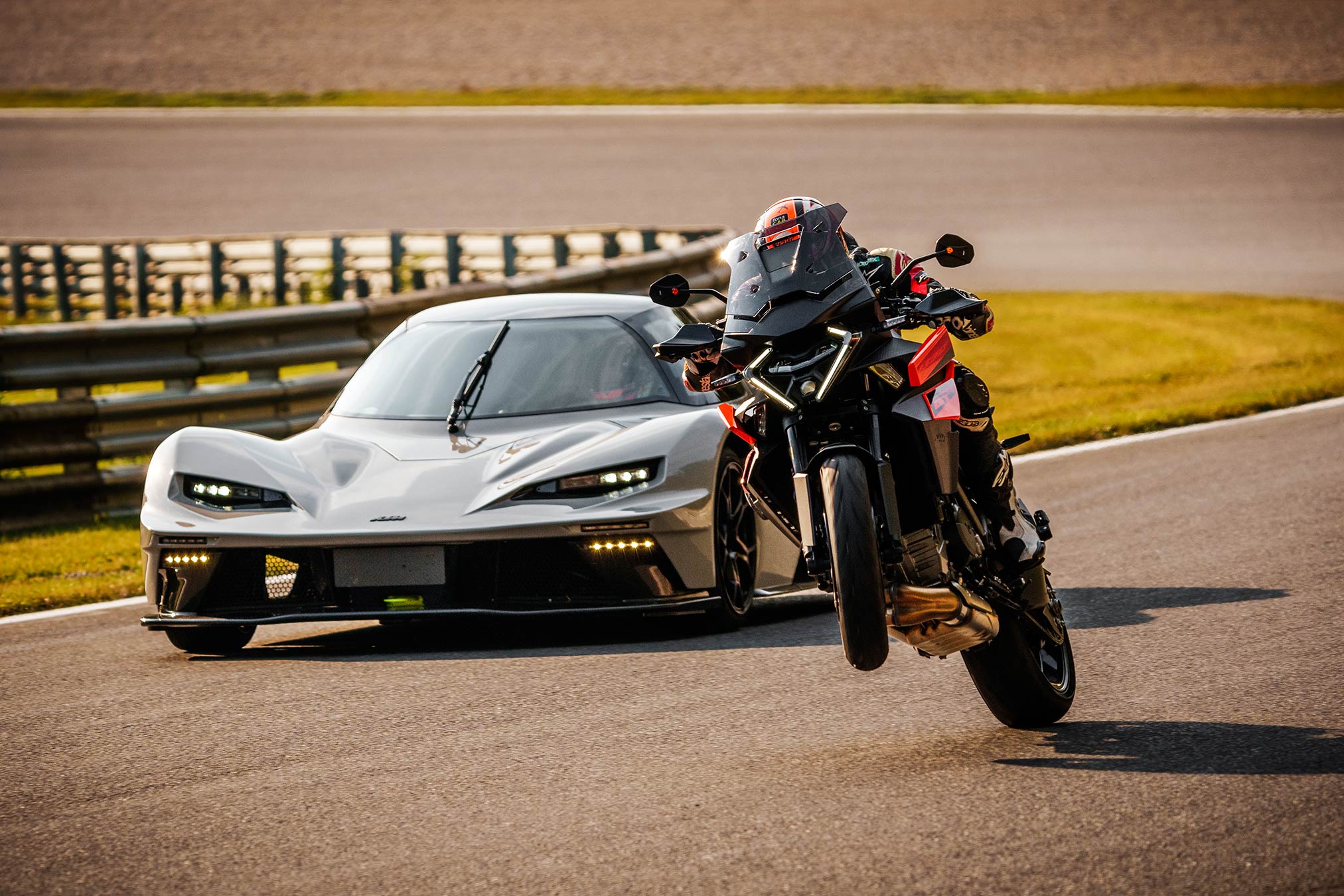 With handling at a premium, the engine assists in elevating torsional stiffness, which is now 3 x higher than the KTM 1290 SUPER DUKE GT. Along with a lower center of gravity and the goal of refining the connection between the frame, swingarm, triple clamps, and fork, precision has increased and front tire feedback is better than ever before. Stability has risen, and balance between comfort and racing the clock on track has been optimized.