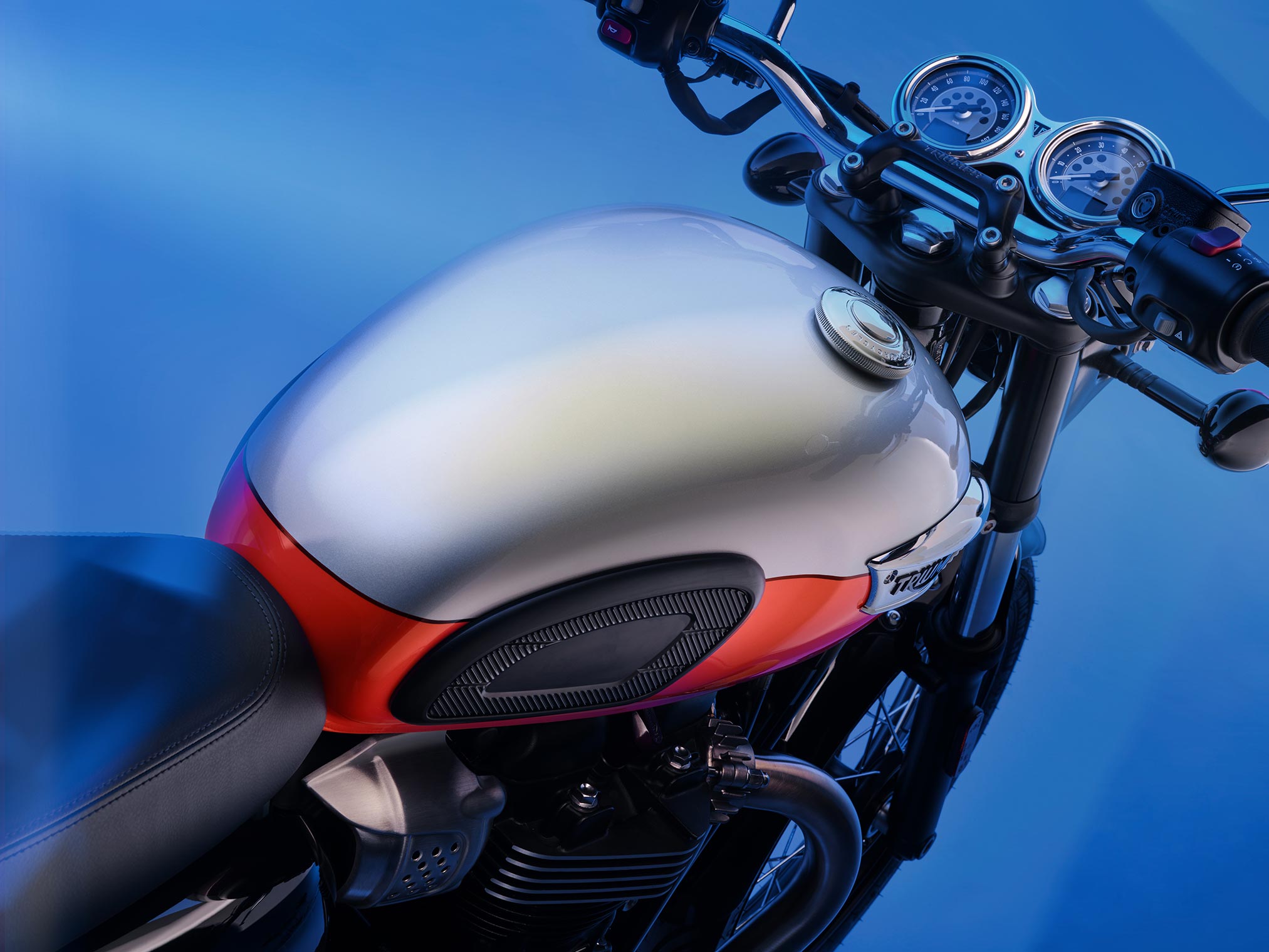 Compact, rider-focused technology that includes the latest generation of ABS and switchable traction control, is sensitively incorporated into the T100’s beautiful classic style.