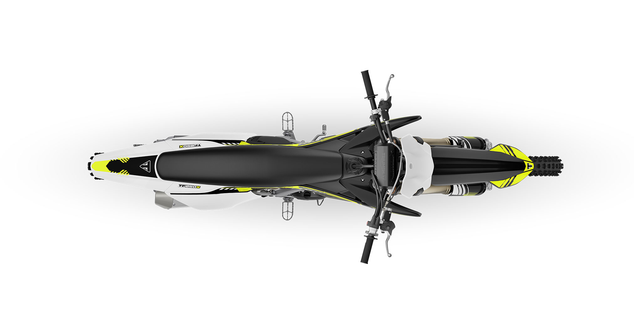 Instantly identifiable on the podium, the striking and dynamic Triumph Racing Yellow, Black, and White trim sets the TF 250-X apart from the pursuing pack.