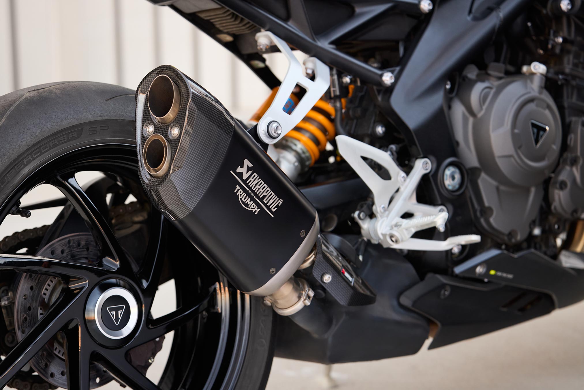 In addition, the must-have accessory for the new Speed Triple will be the new Akrapovič silencer, which features a titanium outer wrap and mounting bracket, finished with a carbon fibre endcap and laser etched Akrapovič logo.