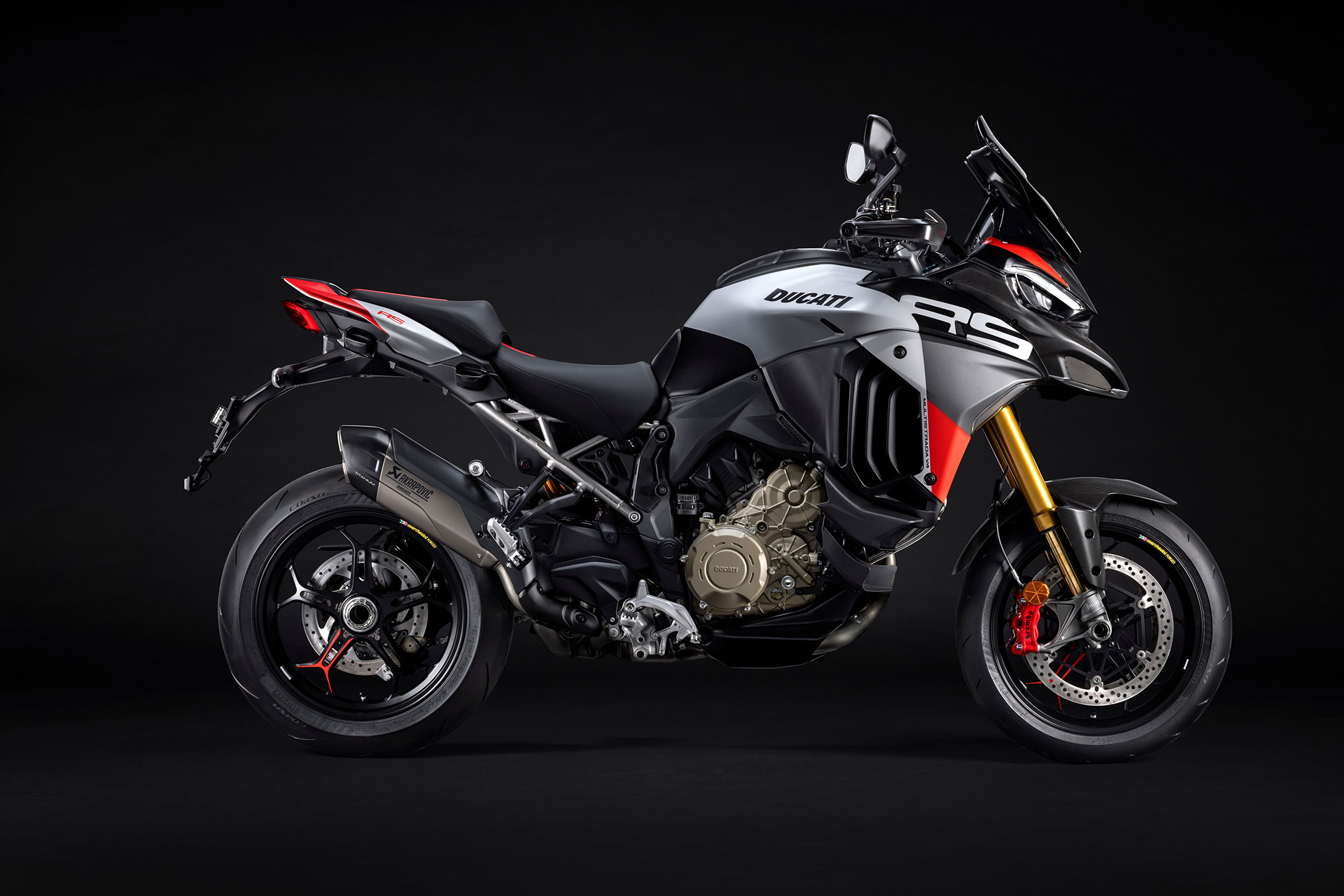 These objectives were achieved by adopting the more permeable and sportier Sprint Filter P08 air filter and the exhaust system with an Akrapovič muffler developed specifically for the Multistrada V4 RS.