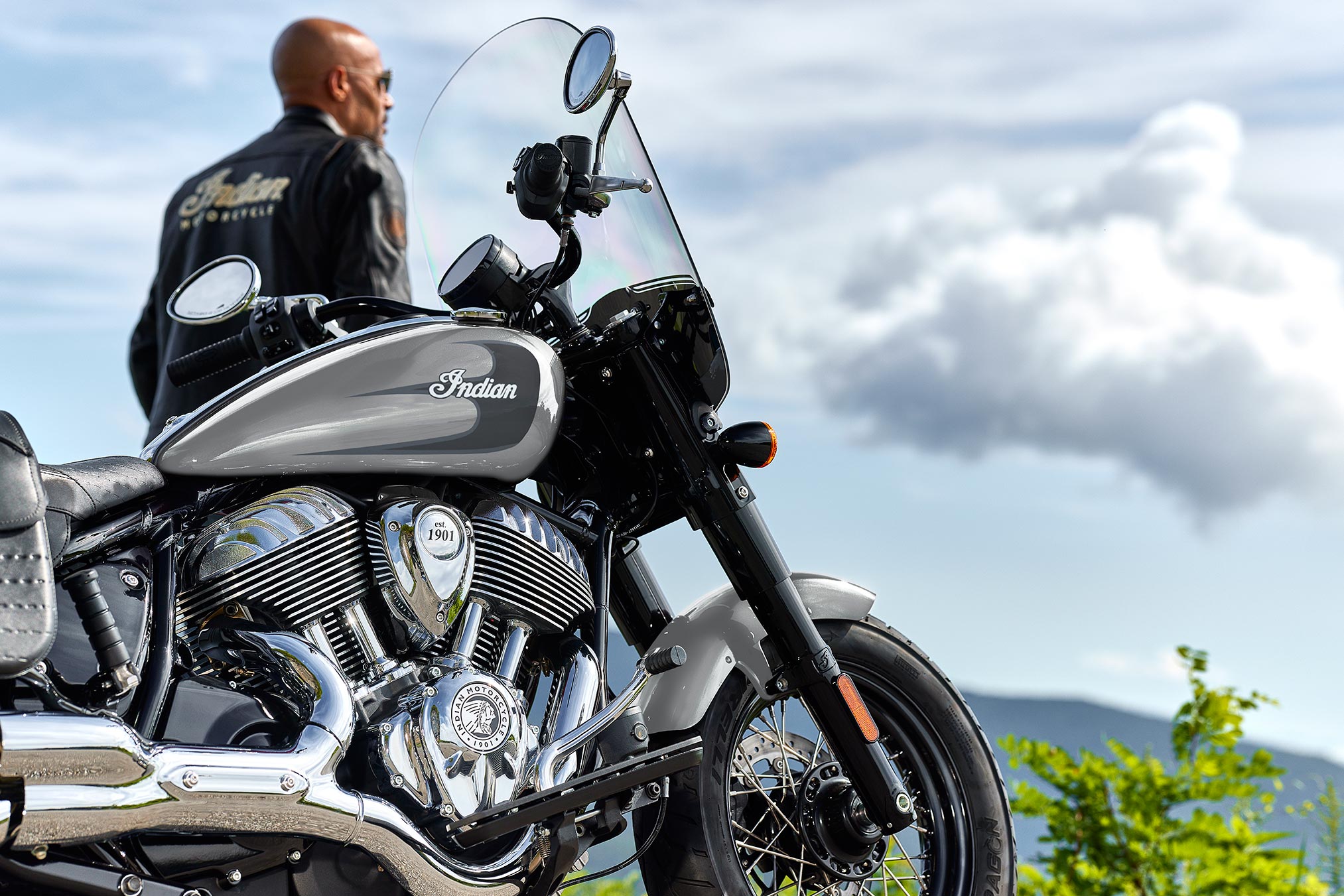 • Off the line, every Super Chief comes with LED lighting, keyless ignition, and Metzeler CruiseTec® tires — providing convenience, safety, and performance.